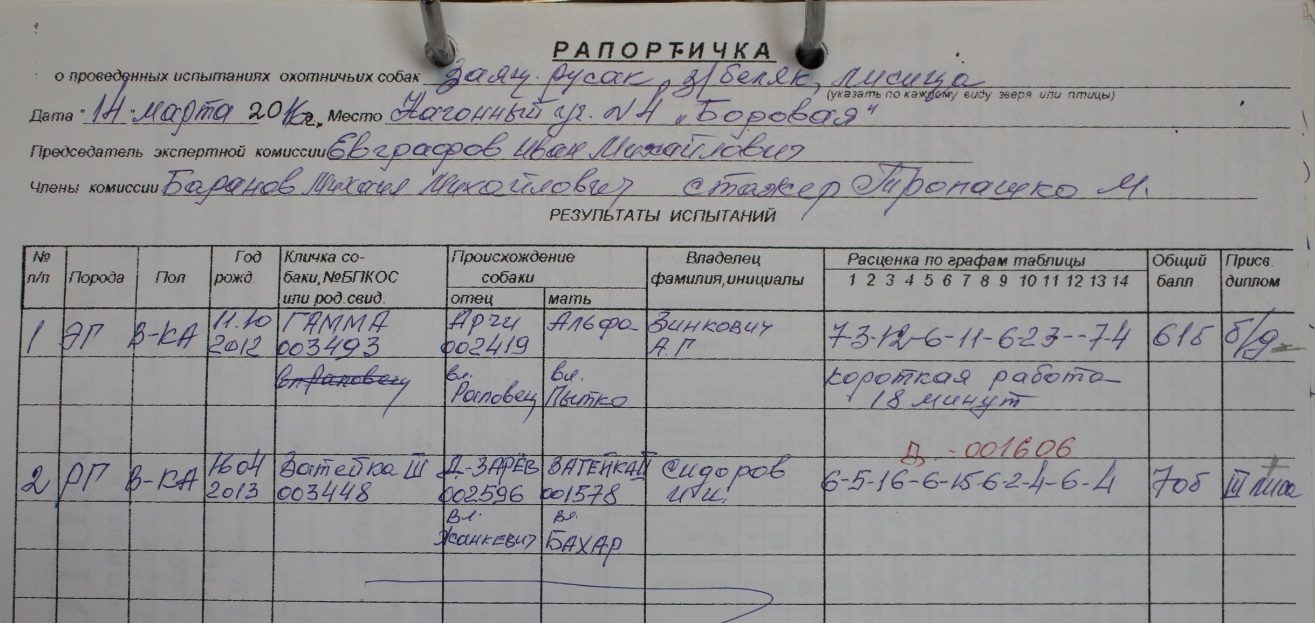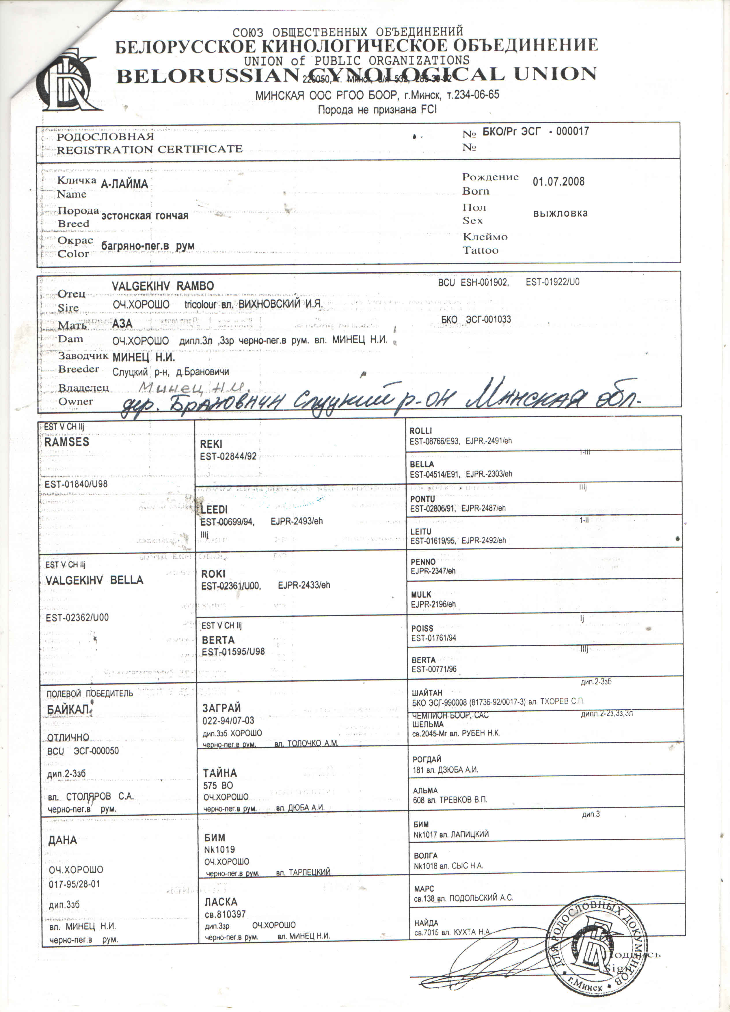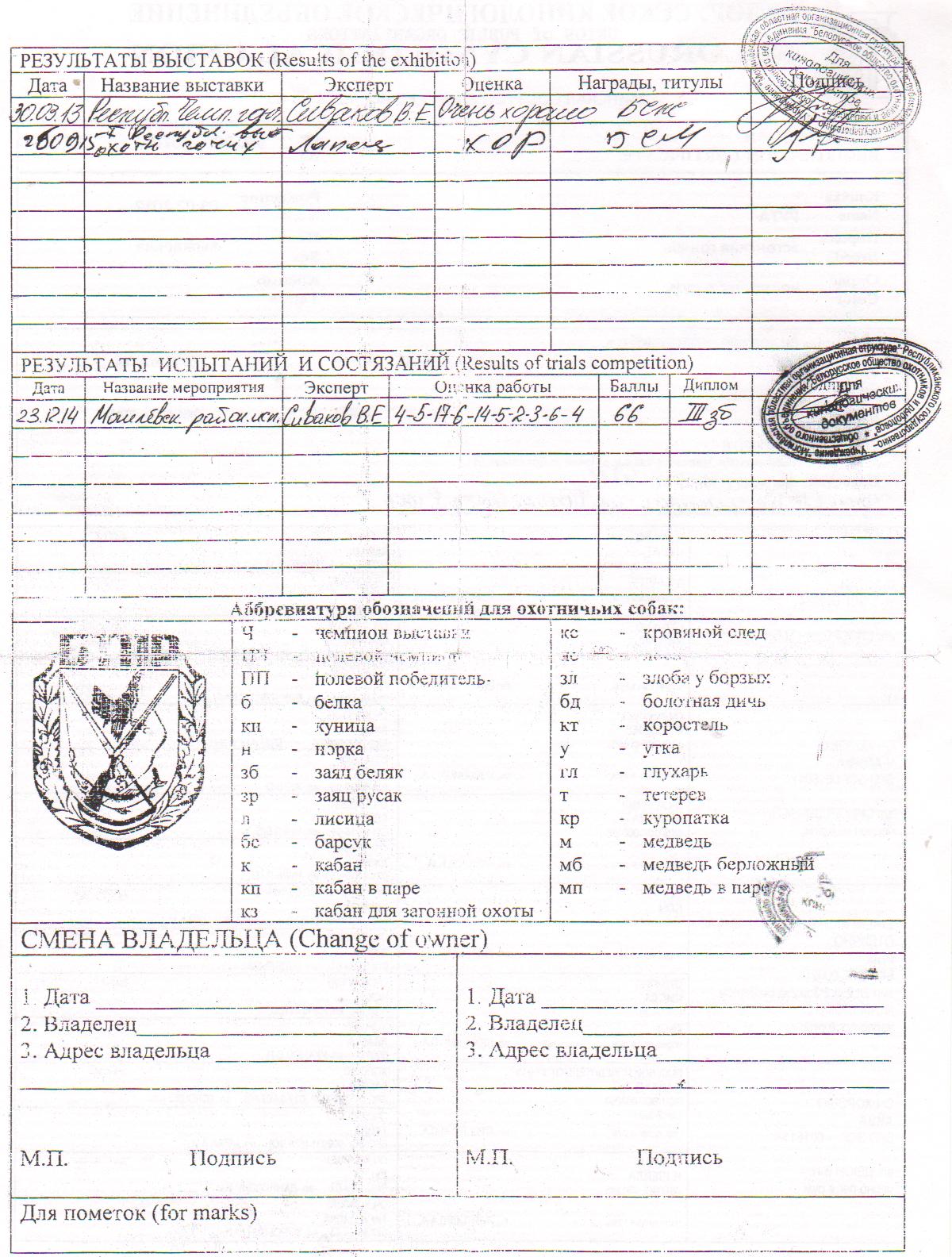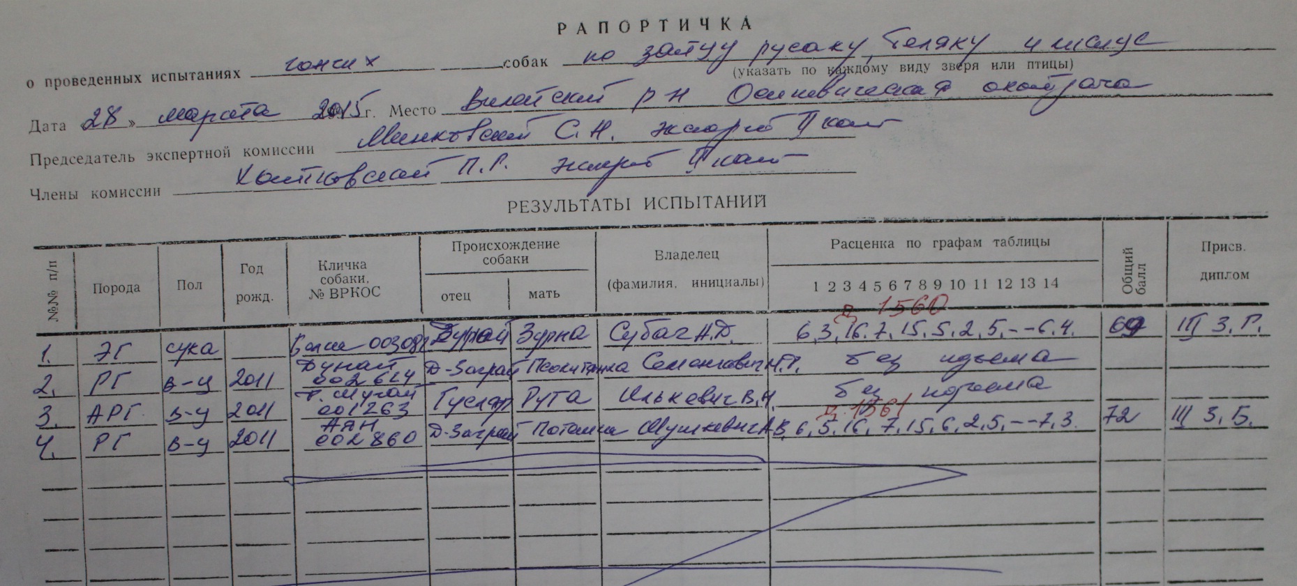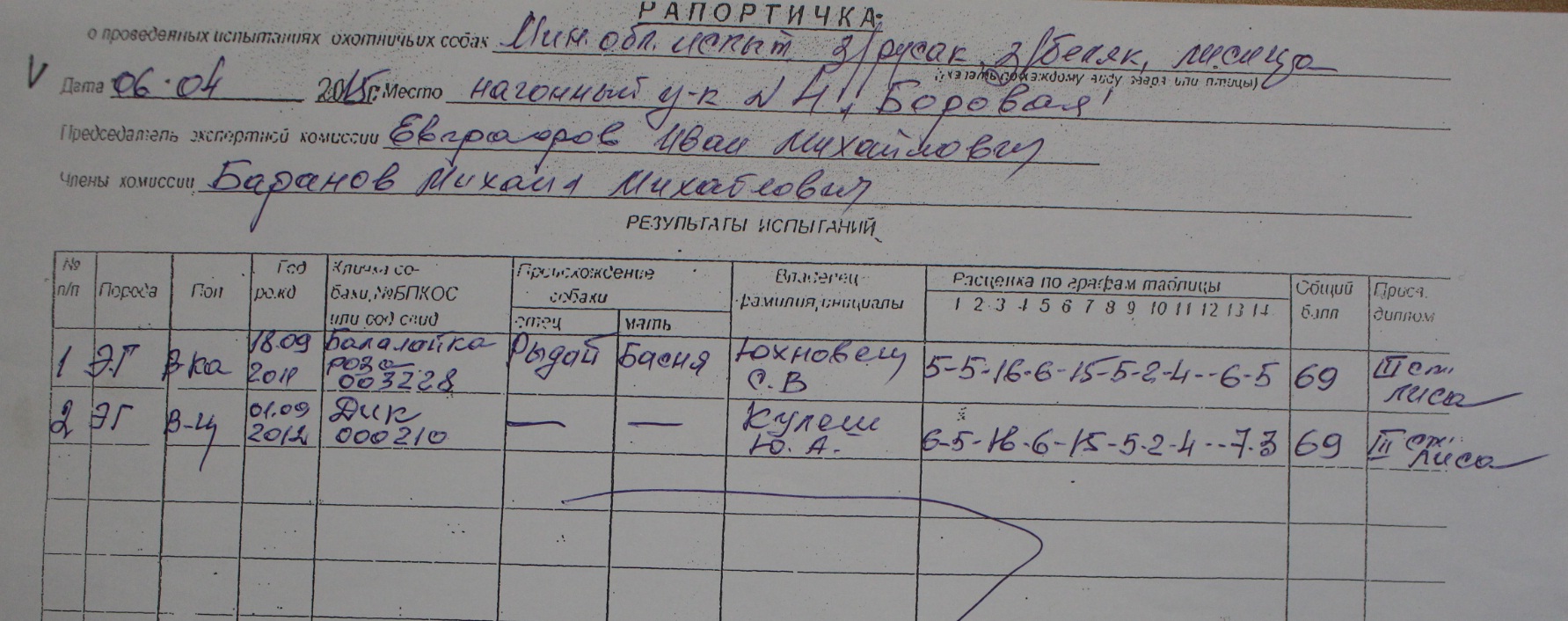 Re: Родословные дипломированных выжлецов ЭГ в РБ