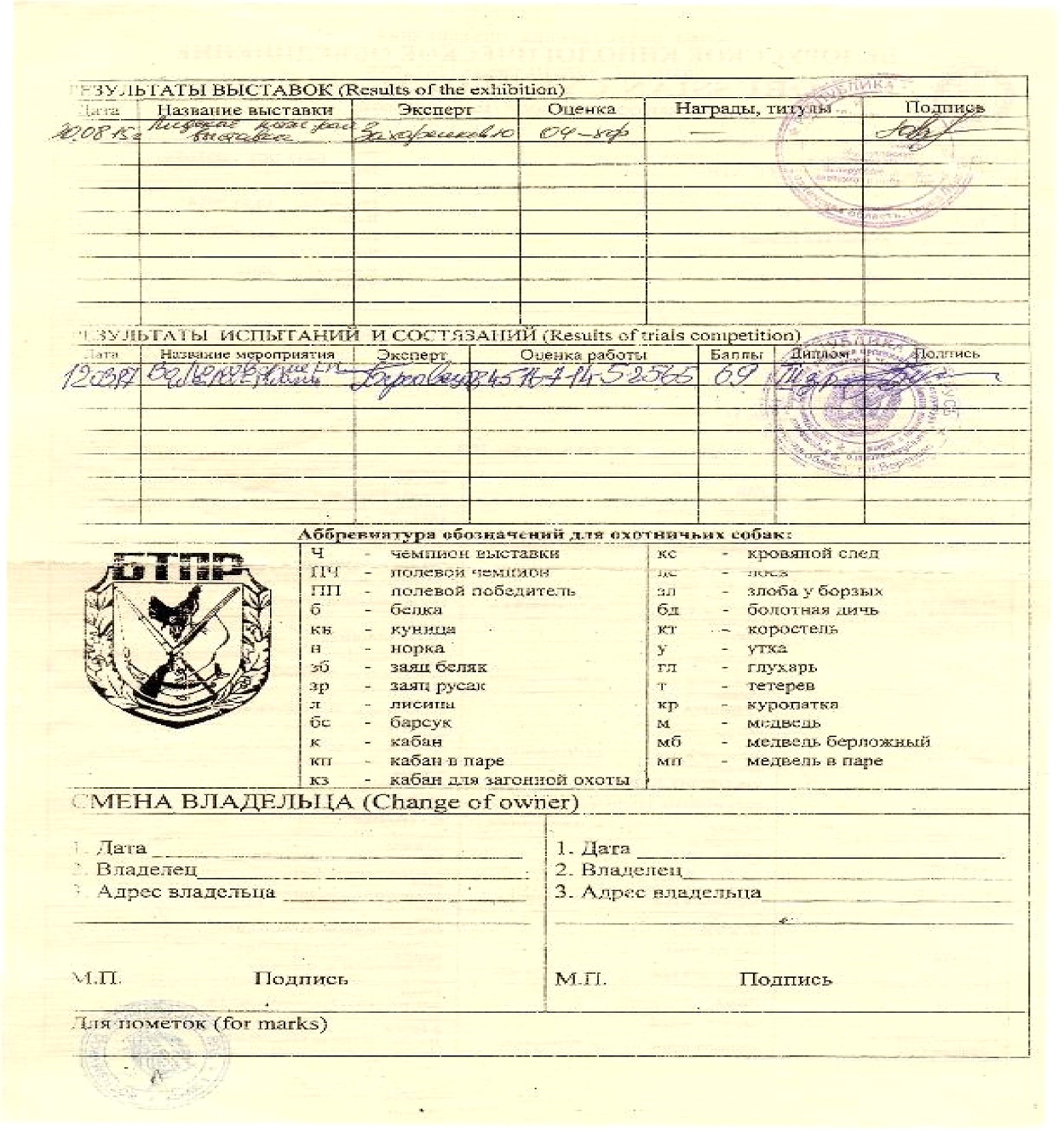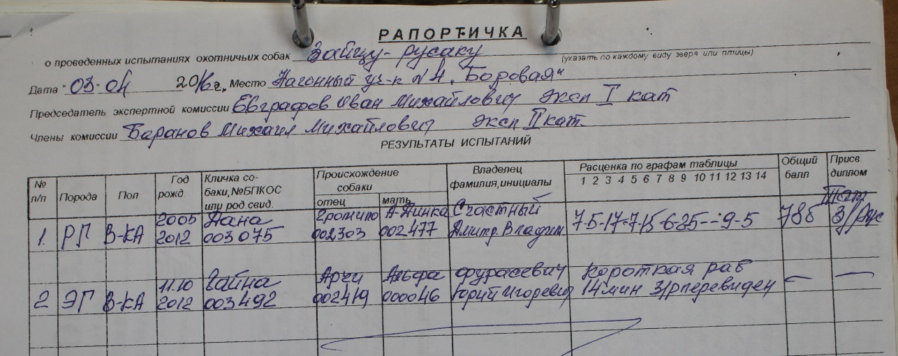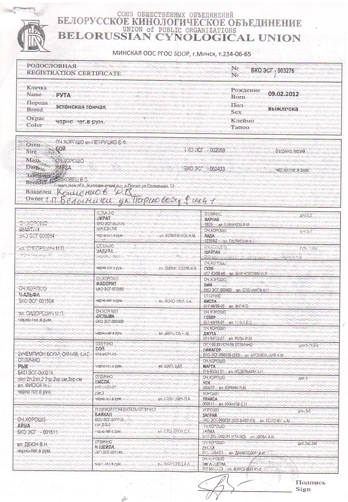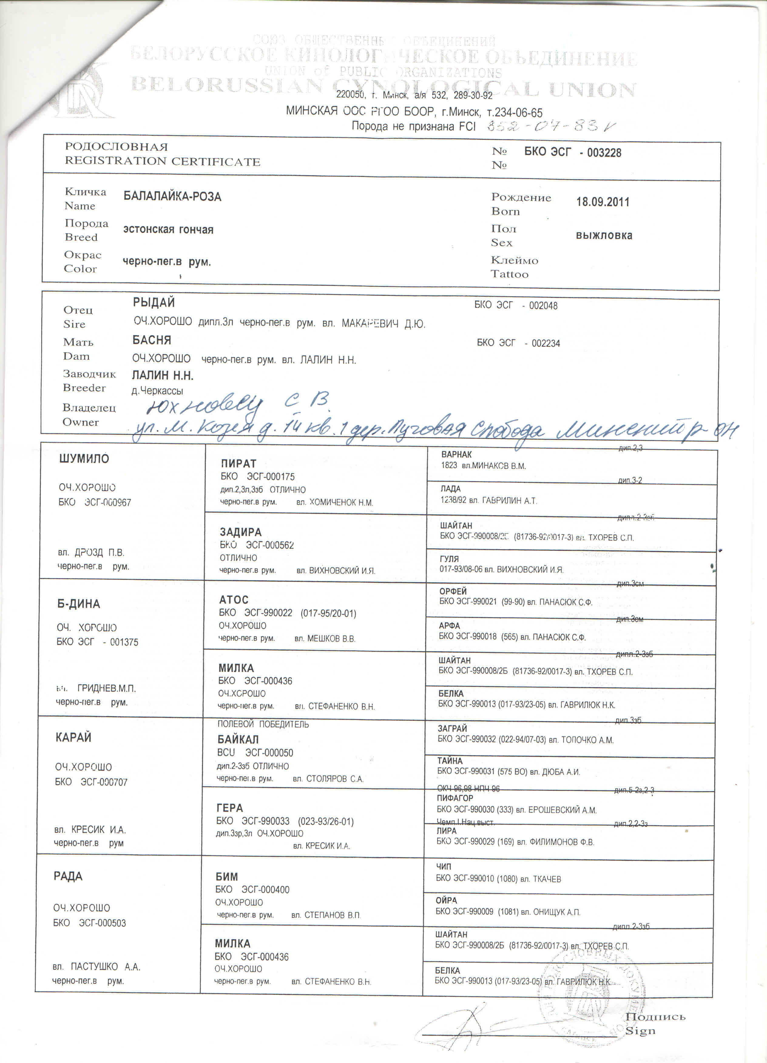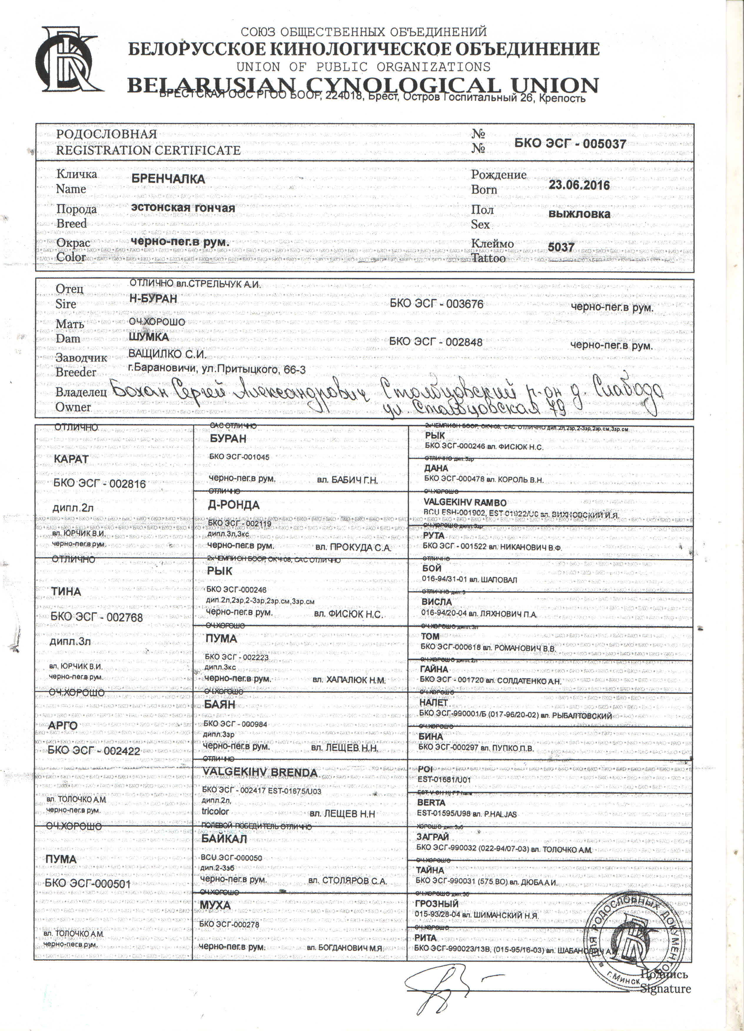 Re: Родословные дипломированных выжлецов ЭГ в РБ