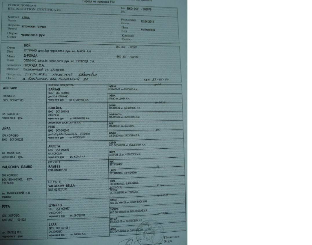Думаю информация о дипломированных Эстонских гончих в РБ будет интересна для планирования вязок.Было бы не плохо, если бы владельцы добавили контактную информацию (мобильный телефон), упомянули потомков с дипломами.