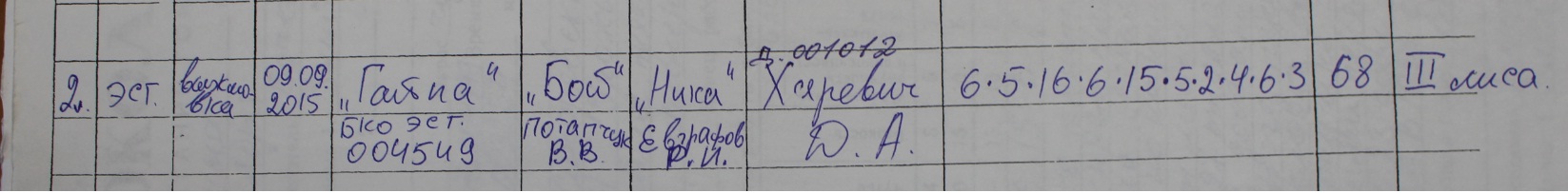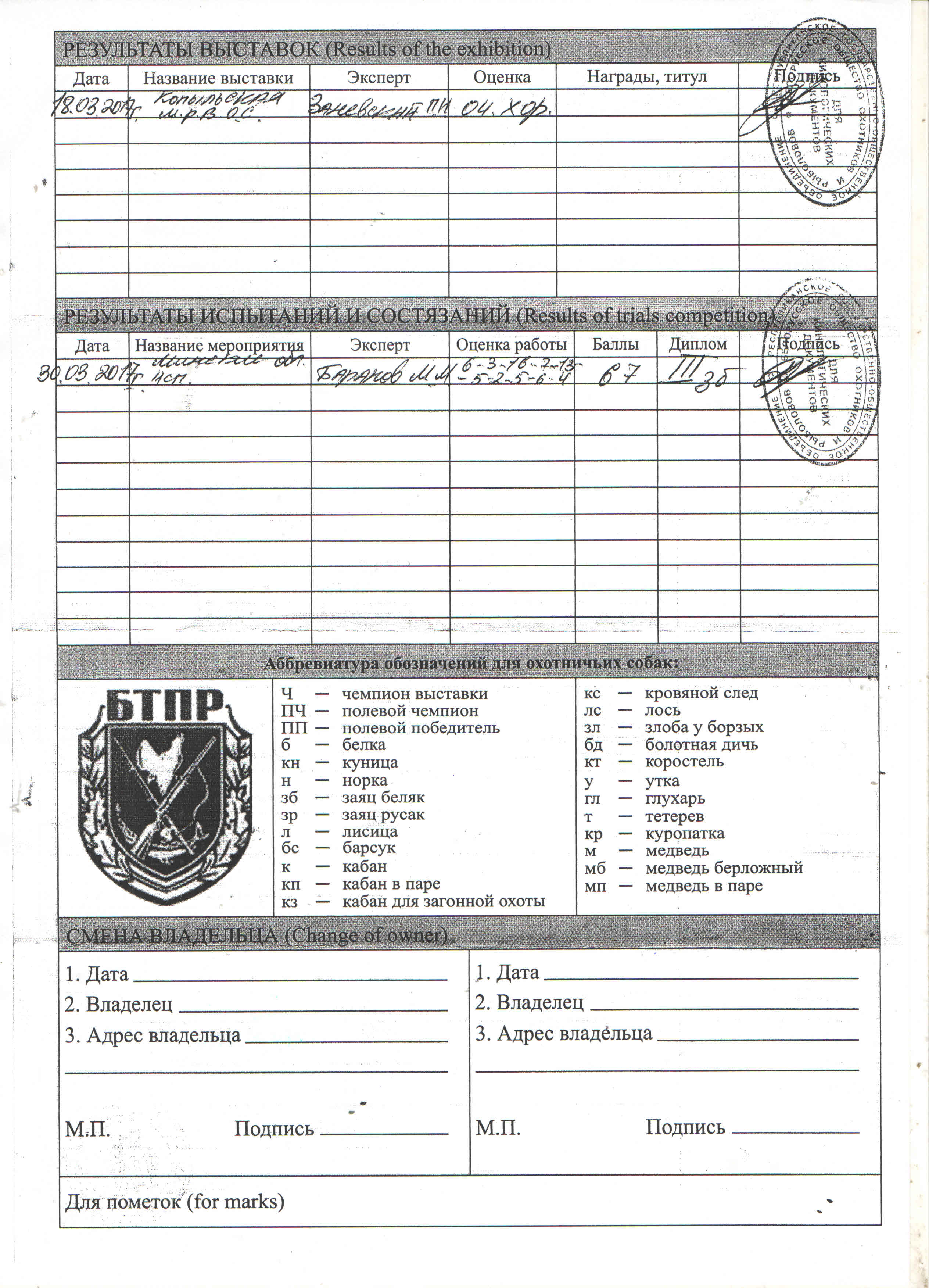 Диплом: 3 зб 6-4-16-8-15-5-2-4-6-4=70 06.04.2014 года на Витебских районных испытаниях Эксперт С.Усов