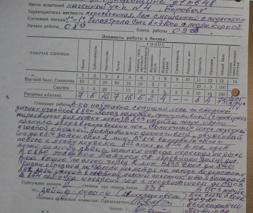 15.03.2017; 3 лиса ; 7-5-16-6-15-6-2-4-6-5=72- Баранов М.М.;Евграфов И.М.(в рапортичке ошибка - №родословной и кличка матери)