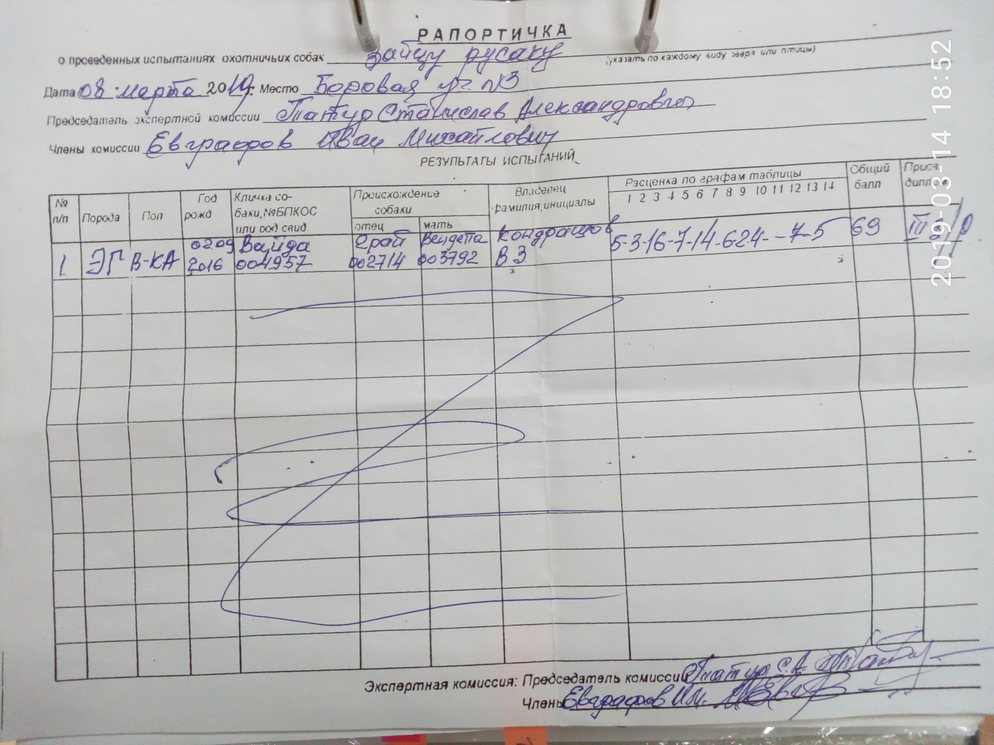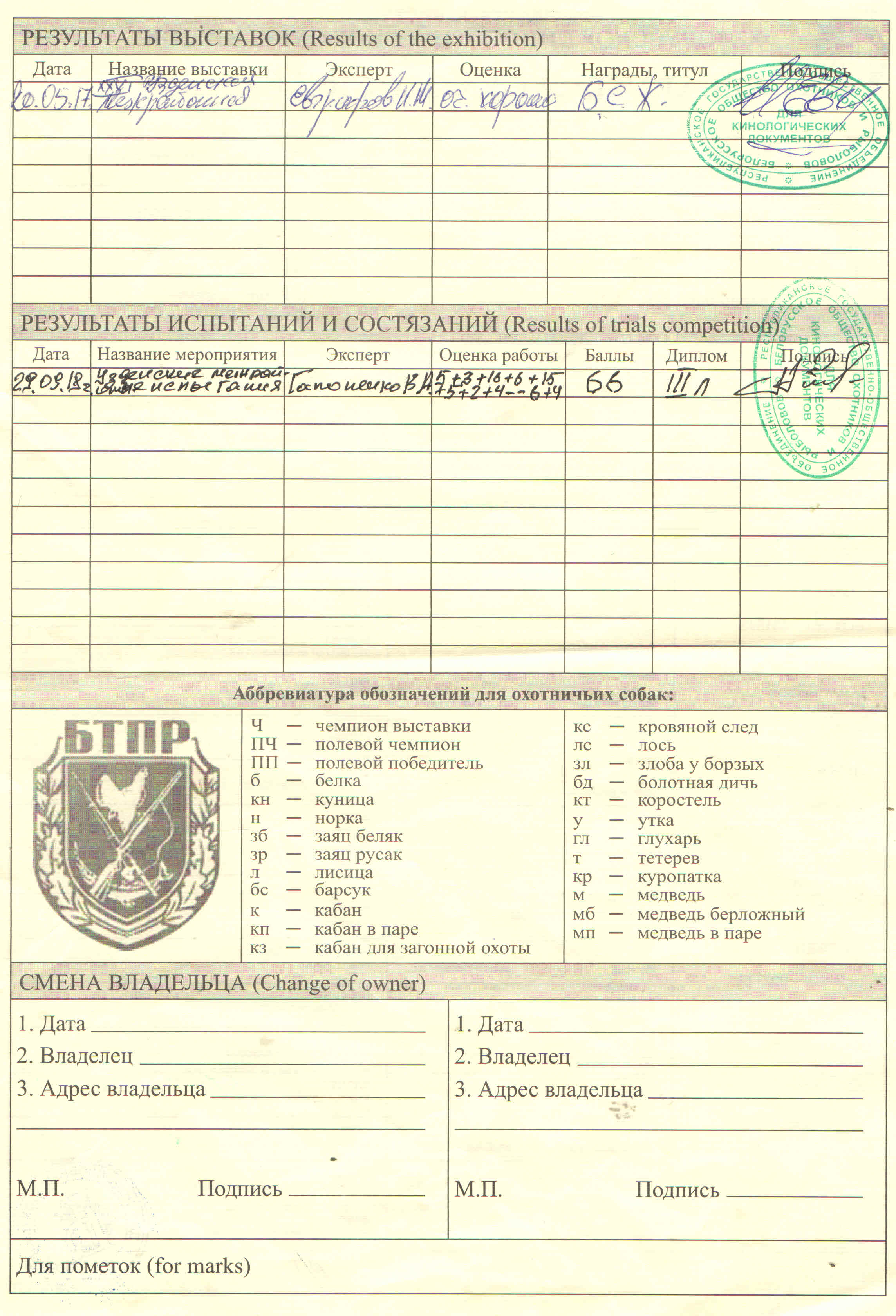 БКО ЭСГ- 003497 Ника, вл. Евграфов Р.И. оценка отл