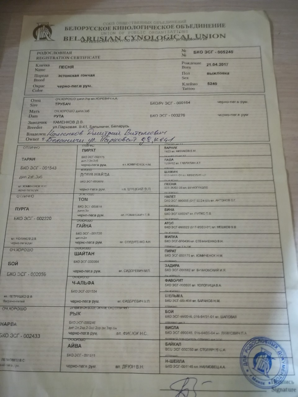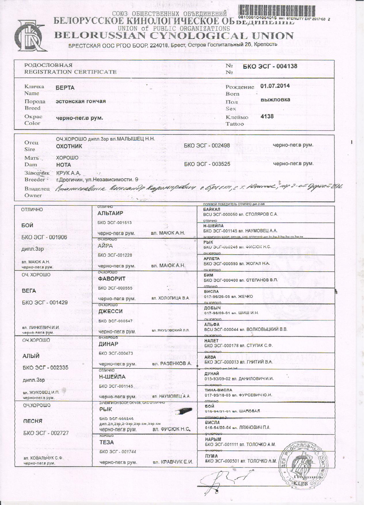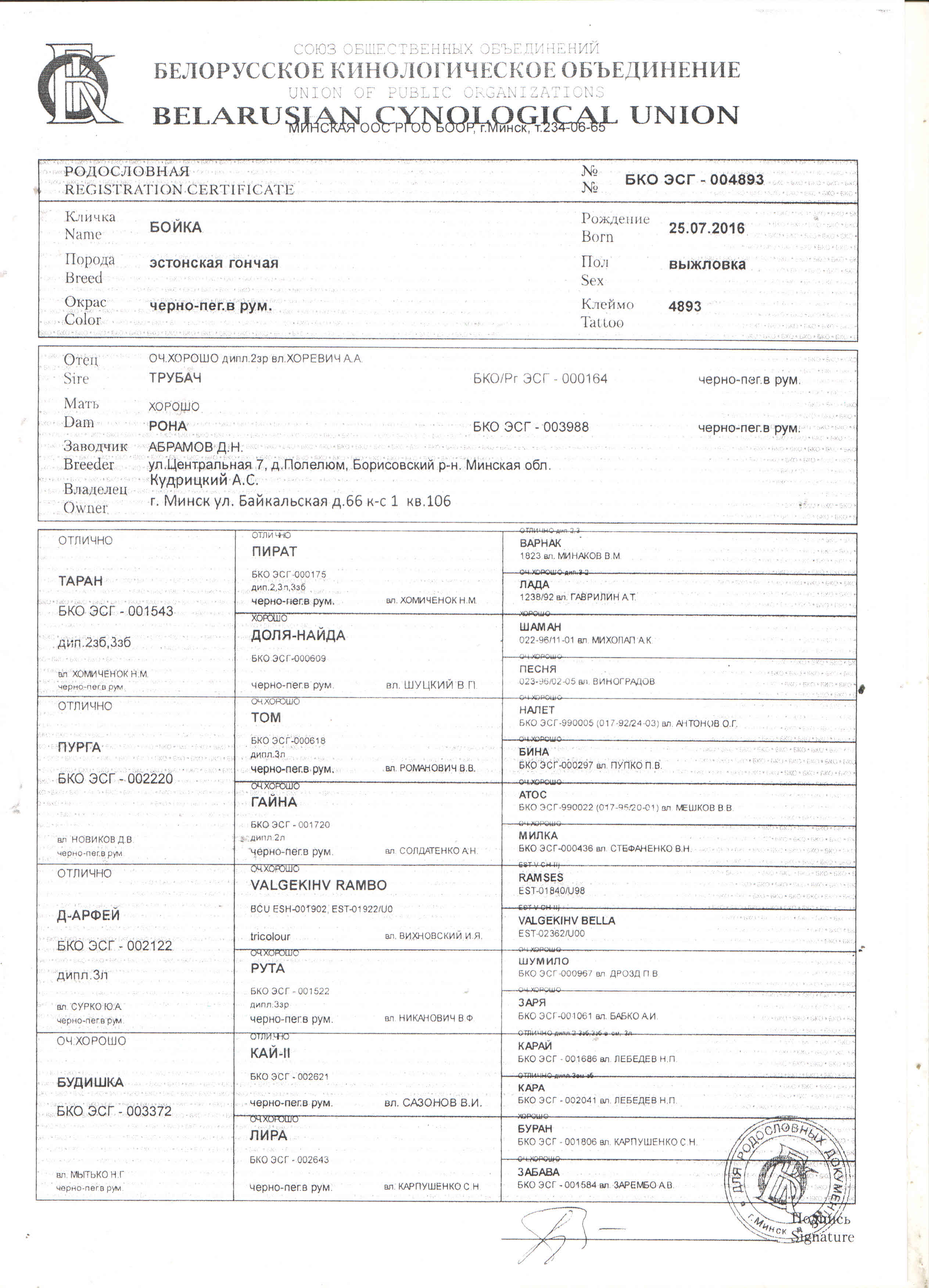 Есть дипломированный потомок БКО ЭСГ-004549 Гайна, вл. Харевич Д.А.