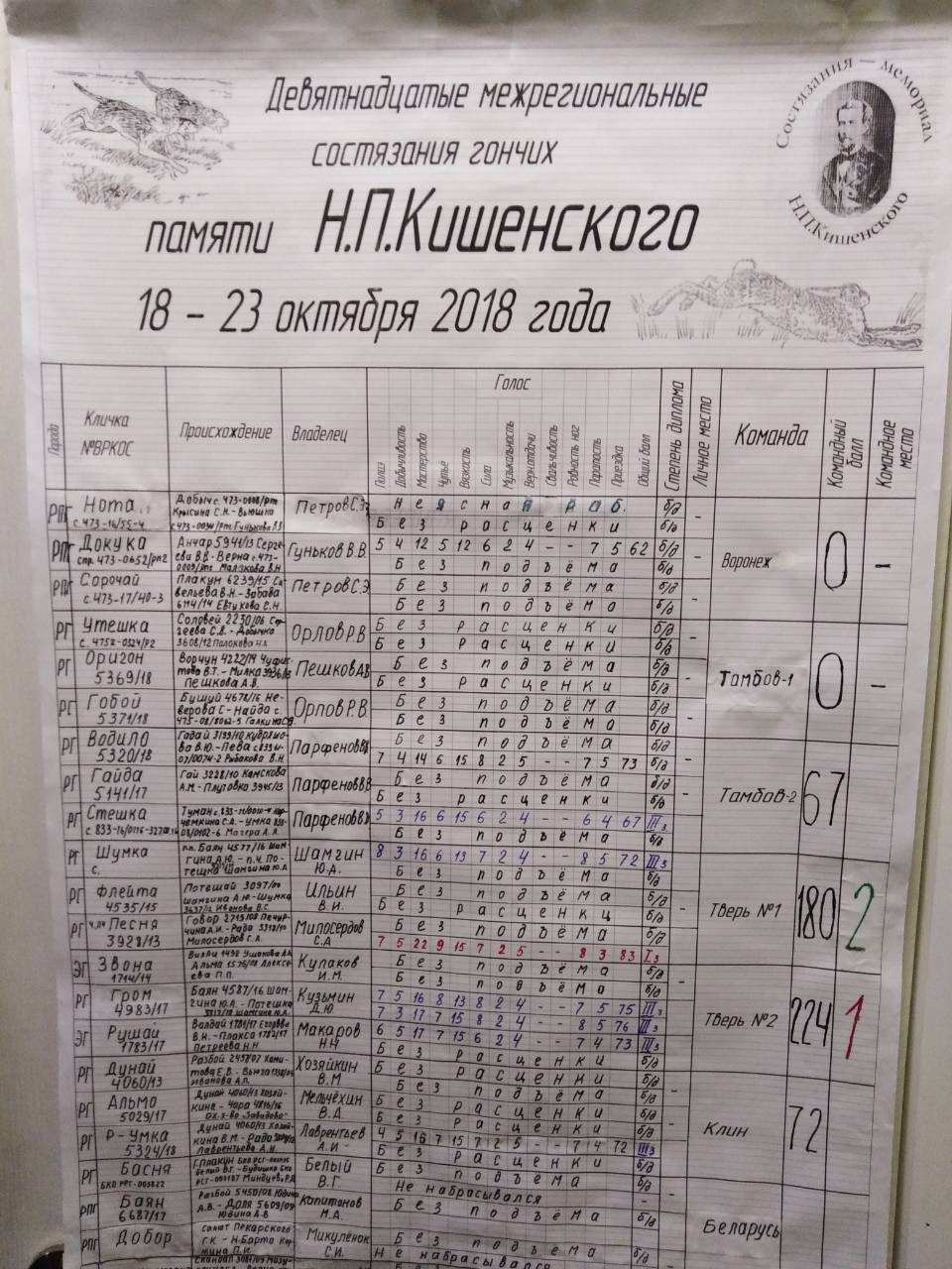 Спасибо Александру Петровичу Кожемякину, который вернулся с состязаний помяти Кишенского и поделилися итоговой таблицей состязаний... :uch_tiv: Я думаю очень полезно будет для тех кто не понимает ценности осенних дипломов... Какое колличество достойных собак и сколько дипломных работ... znaika
