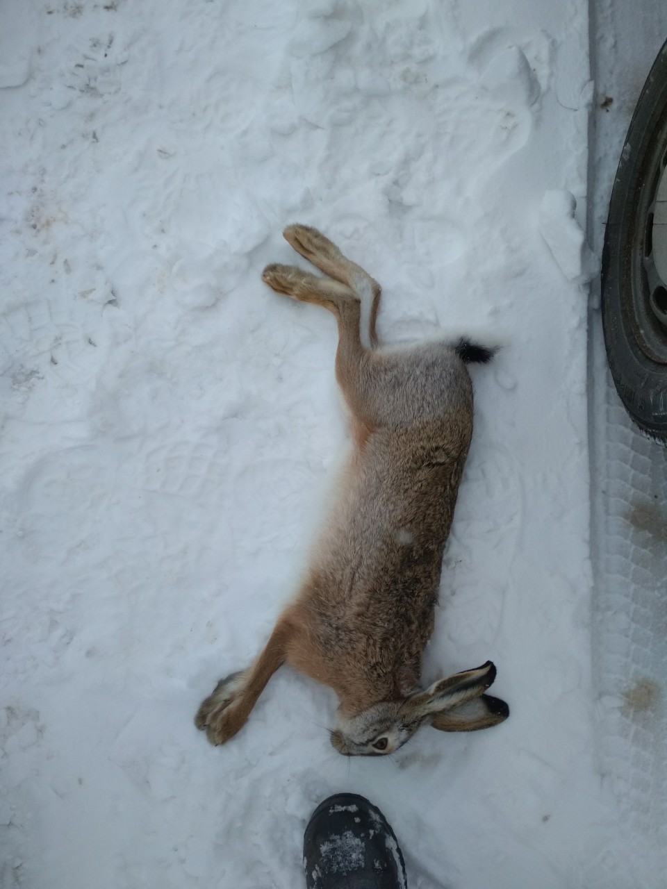 Выйшаў на гасцiнец i вырашыў вiдэапаляваннем заняцца. Месца зручнае - заяц з лесу ў лес цераз яго туды-сюды шыбуе, толькi снег з-пад лапаў курэць. Але i тут бяда – пайшоў снег. Перагледзеў вiдэа на сваiм старэнкiм смартфоне. Калi сабаку i разбярэш на полi, дык заяц выглядае дробнай кузуркай. Голас ганчака з дынамiка вiшчыць, як у нейкай эстонкi. Батарэя ў смартфоне зусiм cела.