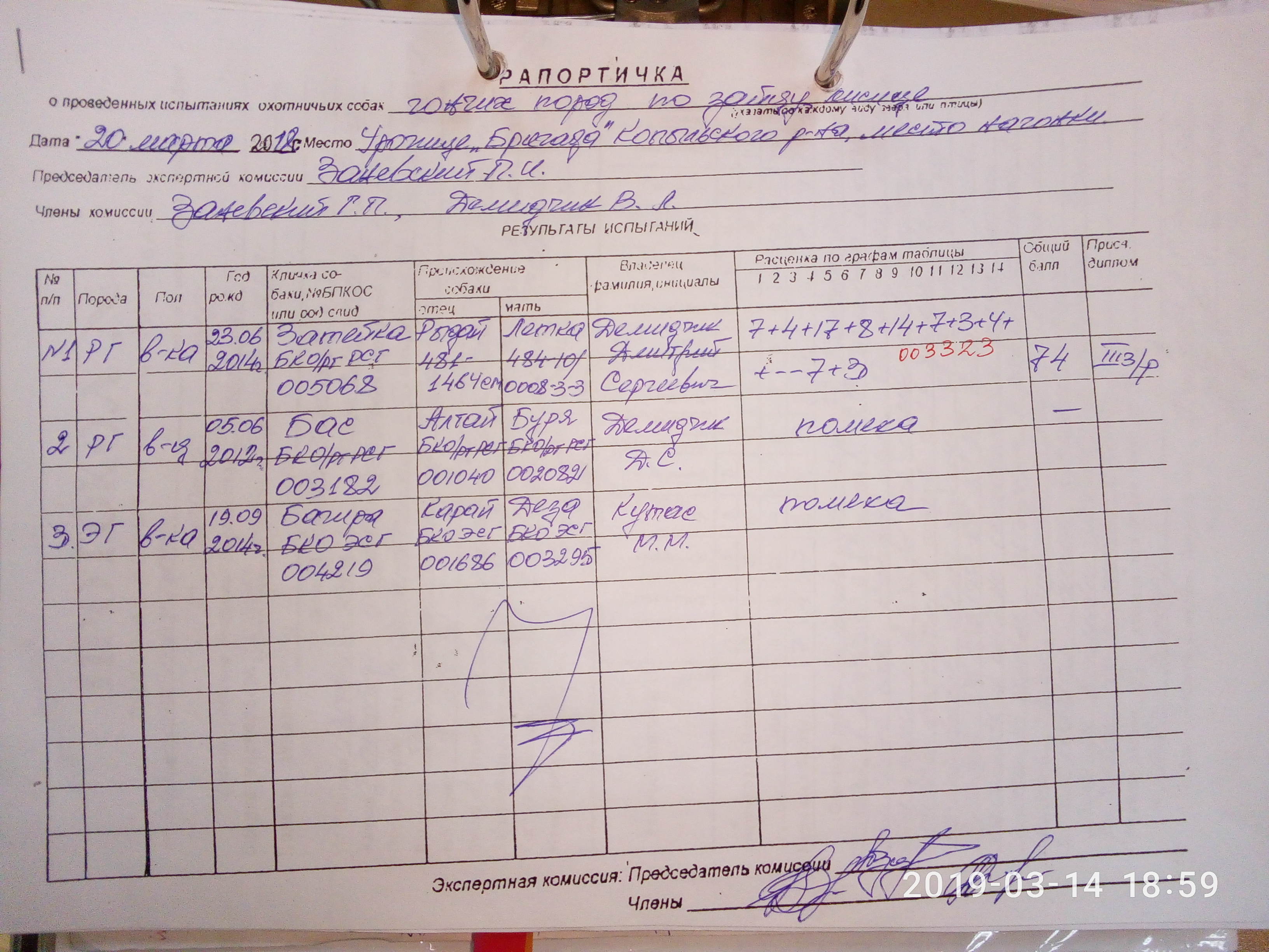 Re: Родословные дипломированных выжлецов ЭГ в РБ