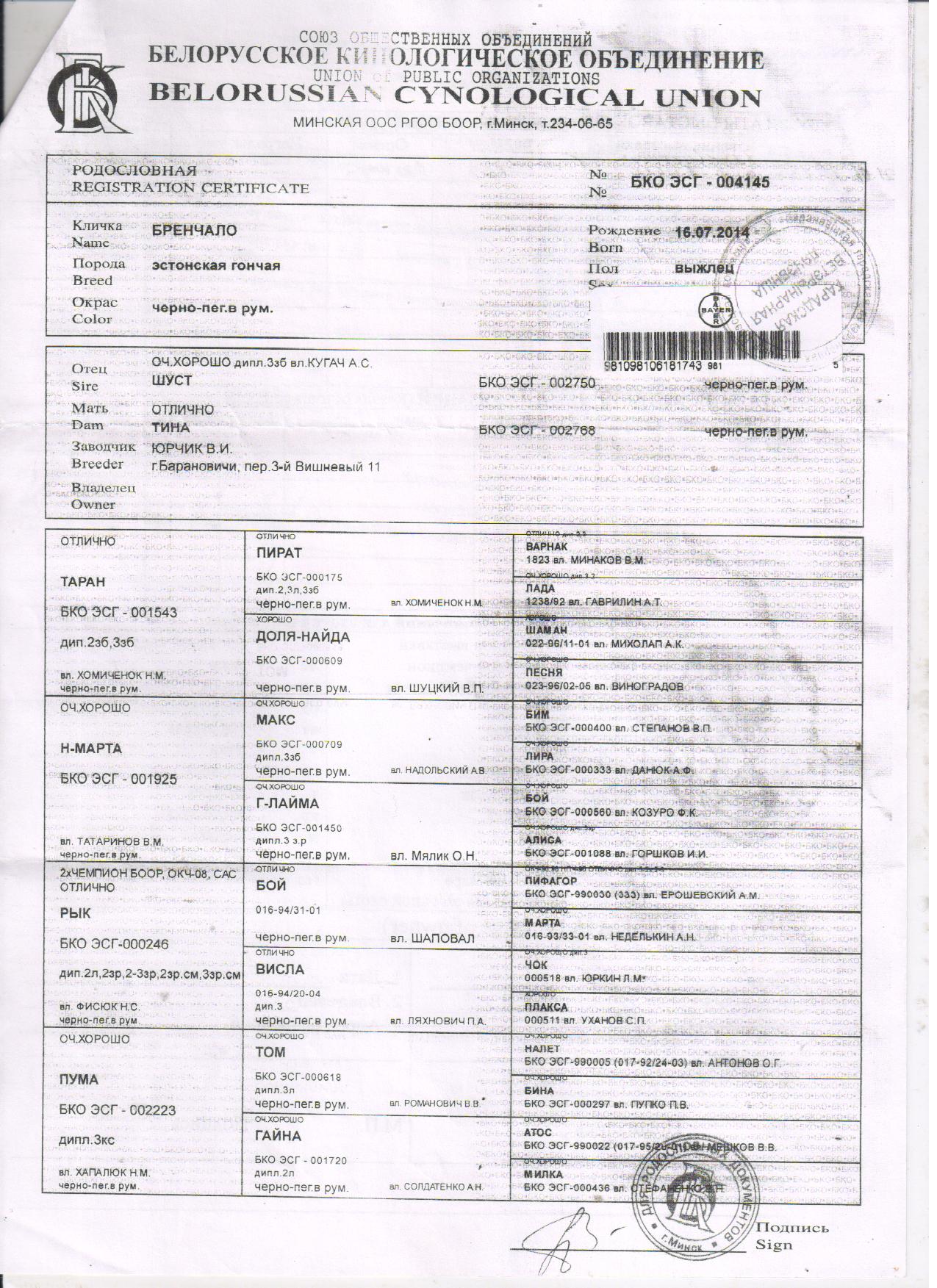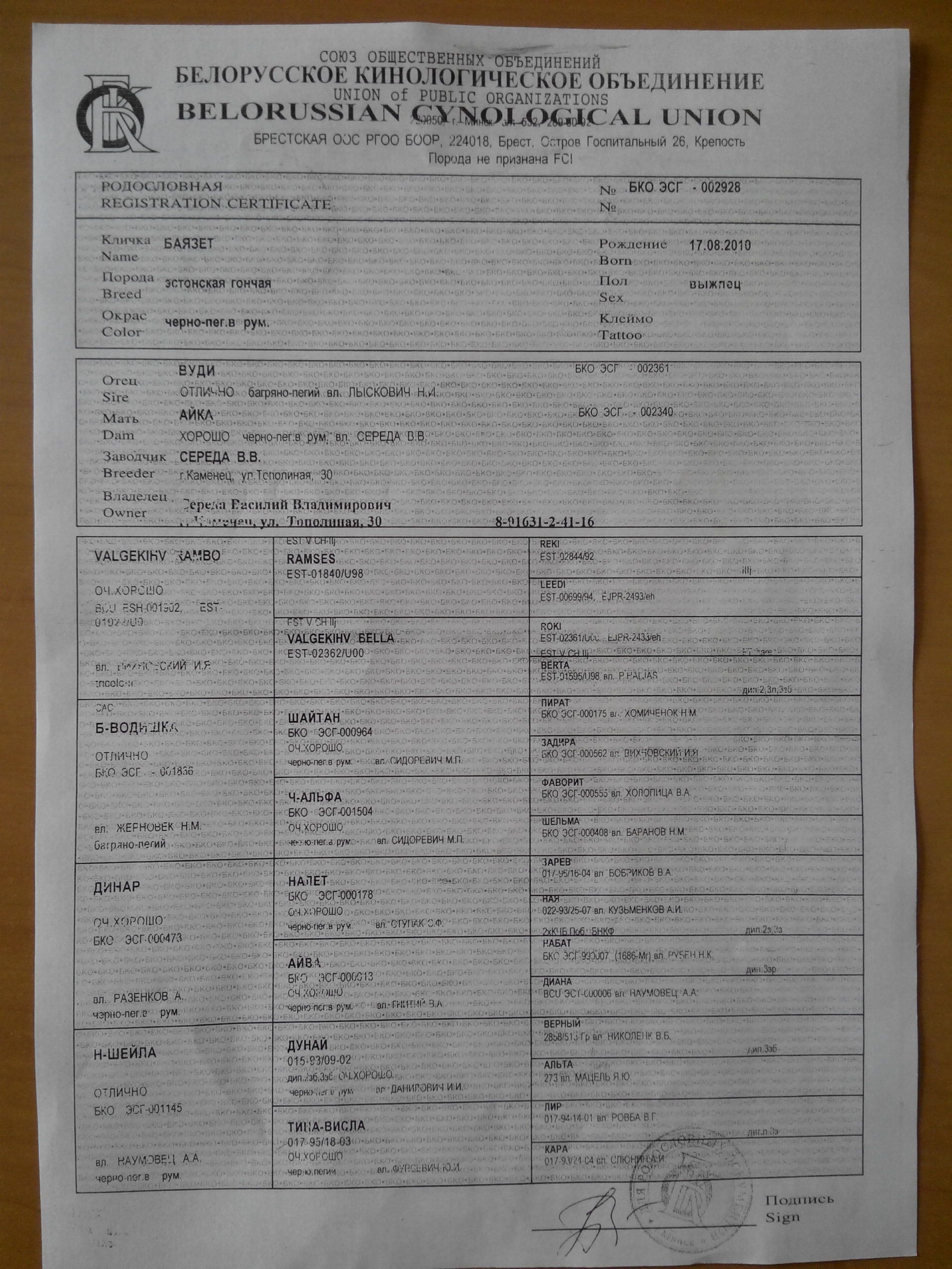 Думаю информация о дипломированных выжлецах Эстонских гончих в РБ будет интересна для планирования вязок.Было бы не плохо, если бы владельцы добавили контактную информацию (мобильный телефон), упомянули потомков с дипломами.
