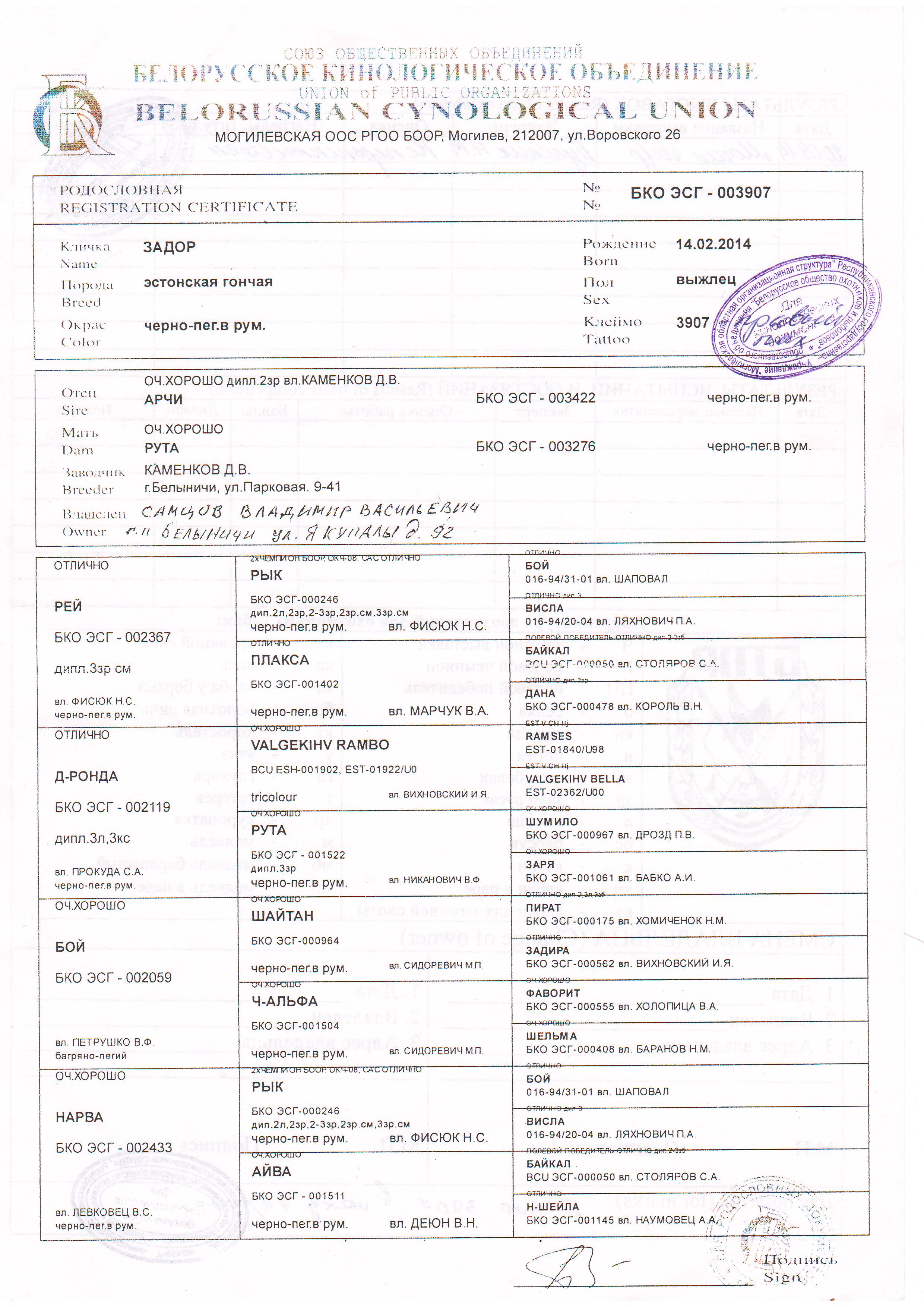 46. БКО ЭСГ-004086; 02/07/2014, Шаман, вл. Романович В.В.