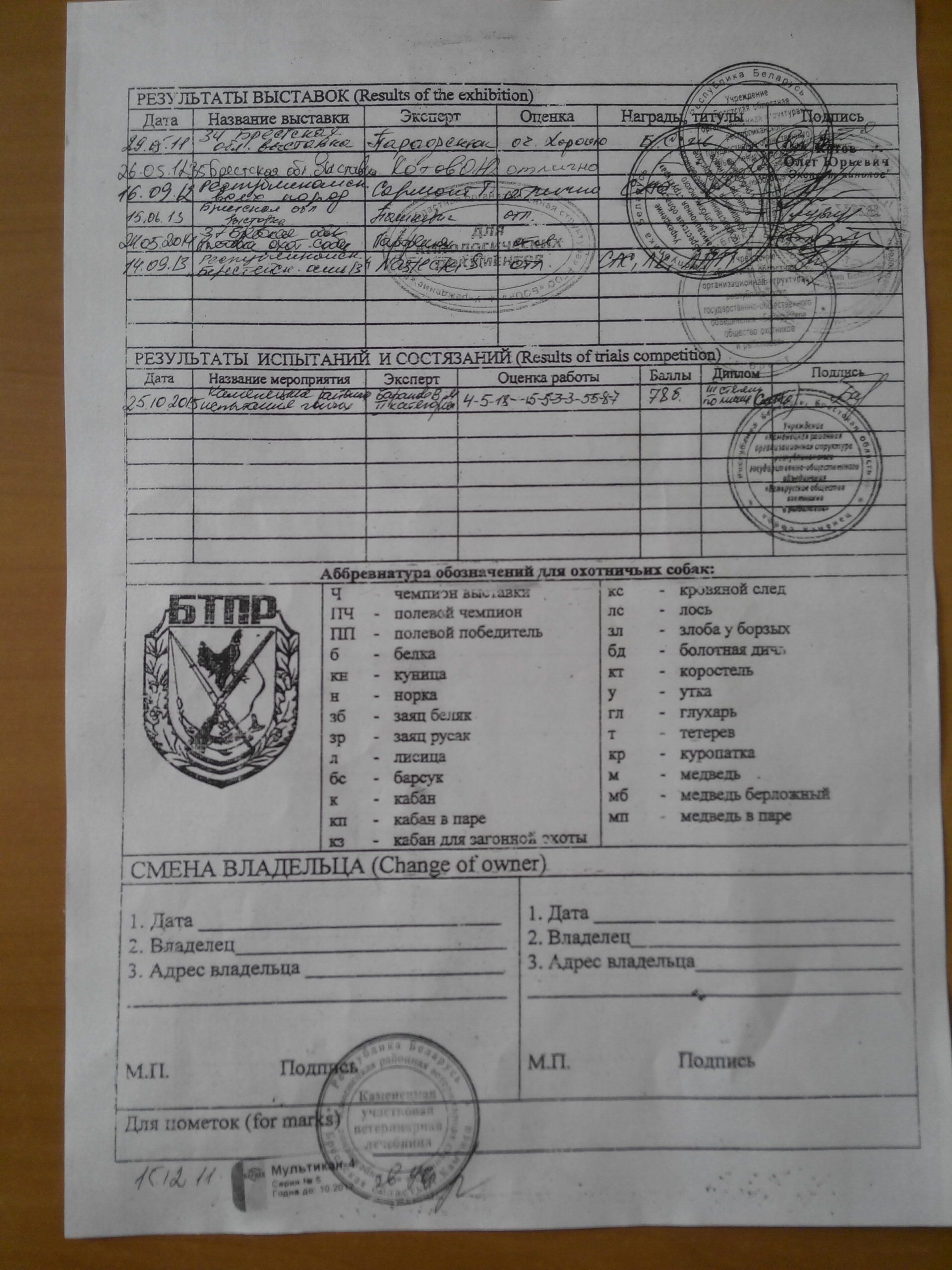 01. БКО ЭСГ-003264 ; 12/12/2011, Бой, вл. Потапчик В.В.
