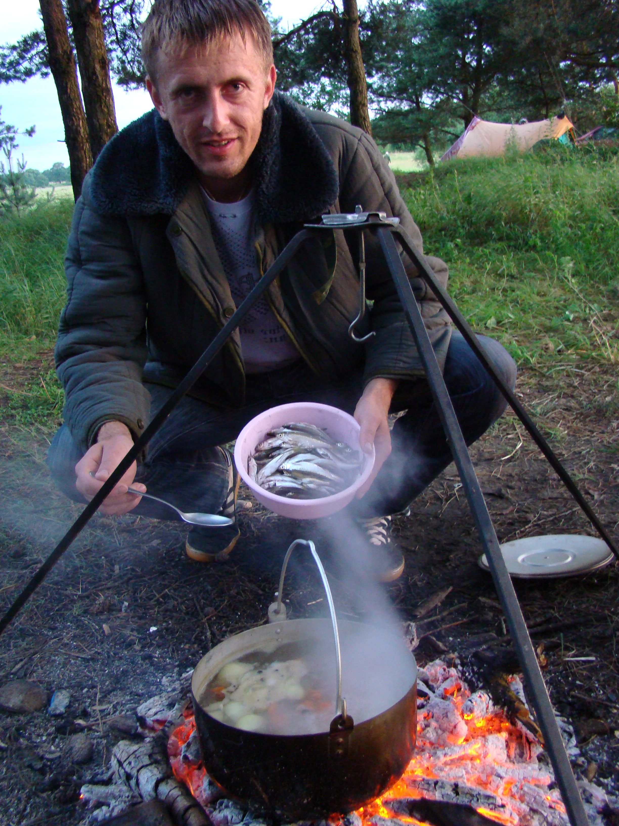 В общем вернулись, в общем выезд удался, хотя по улову он был немного послабее чем предыдущий. Первая бригада: Я, Dansk, Ksax и его друг выехали в 9 утра в пятницу, приехали на место - красота! Быстро поставили палатку, разложили импровизированный стол, по 50, и на рыбалку. Очень быстро мной был изловлен хороший окушок, на фдеры вялые поклевки - мелкая плотва.