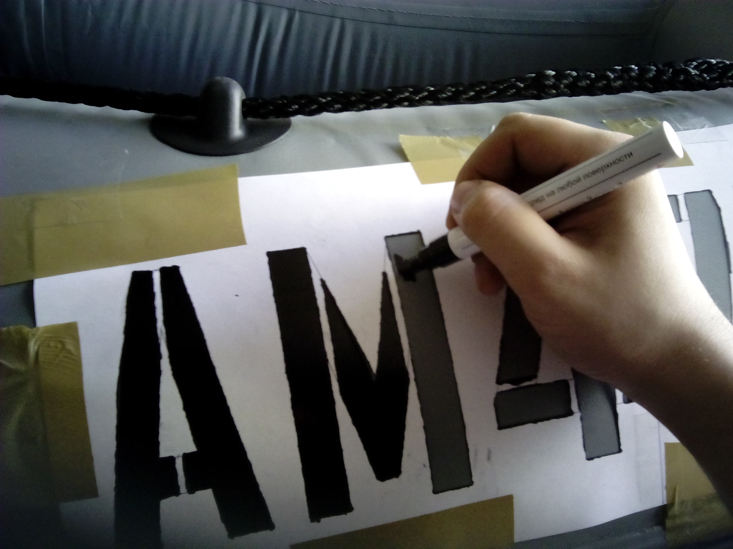 под самым домом в киоске. Надул лодку, при чем только перед, водрузил все это на разложенный диван, для того чтобы не на корачках красить, и принялся за дело...