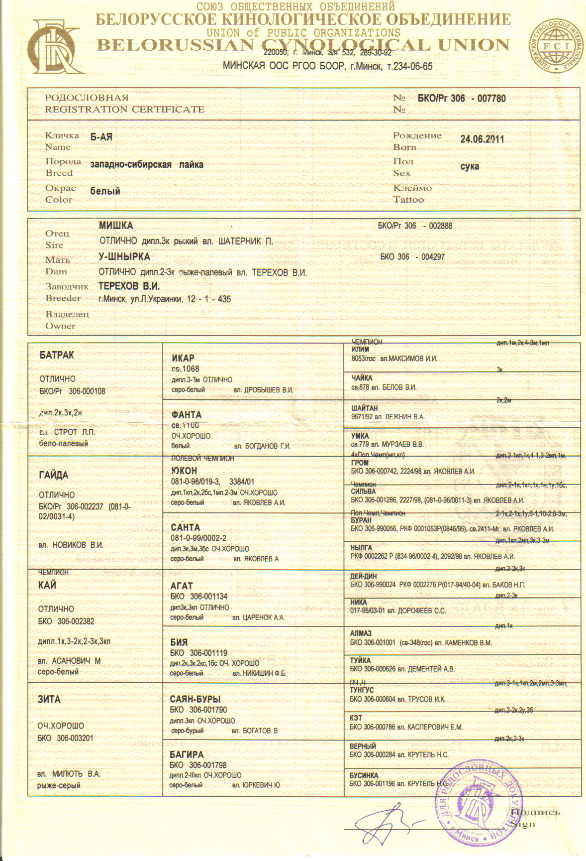 3. Кинологическая организация, зарегистрировавшая вязку