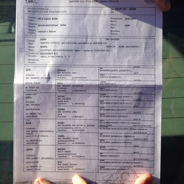 2.2.1 Кличка, номер родословной, фотография родословной с двух сторон.