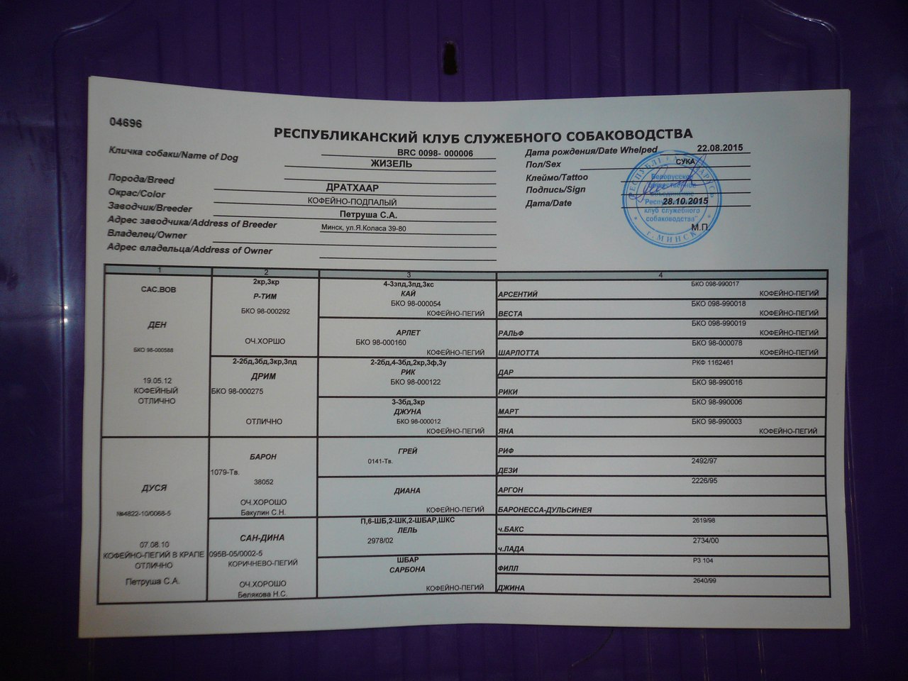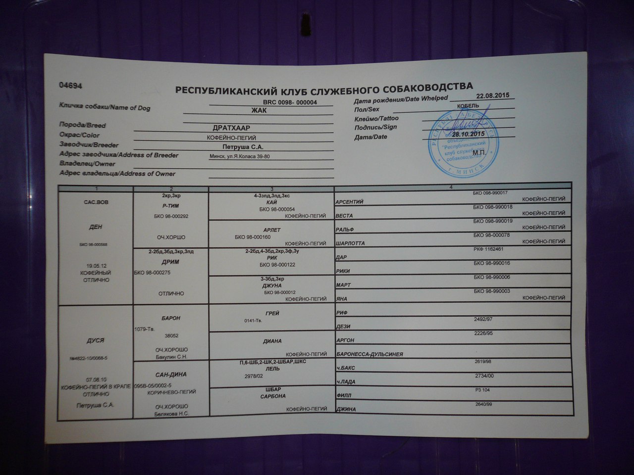 Родословная: BRC 0098-000004