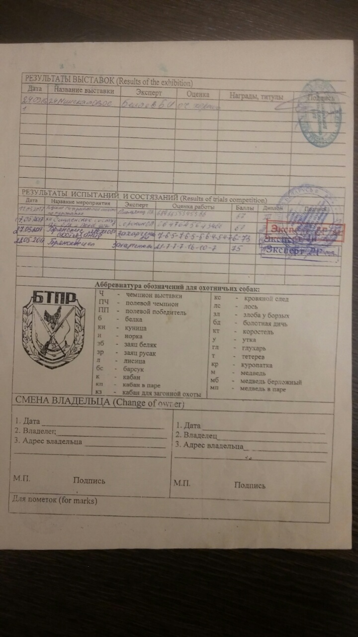 (Все дипломы за рабочие качества с указанием по виду дичи Д3-БД, Д3-ПД, Д2-КС)