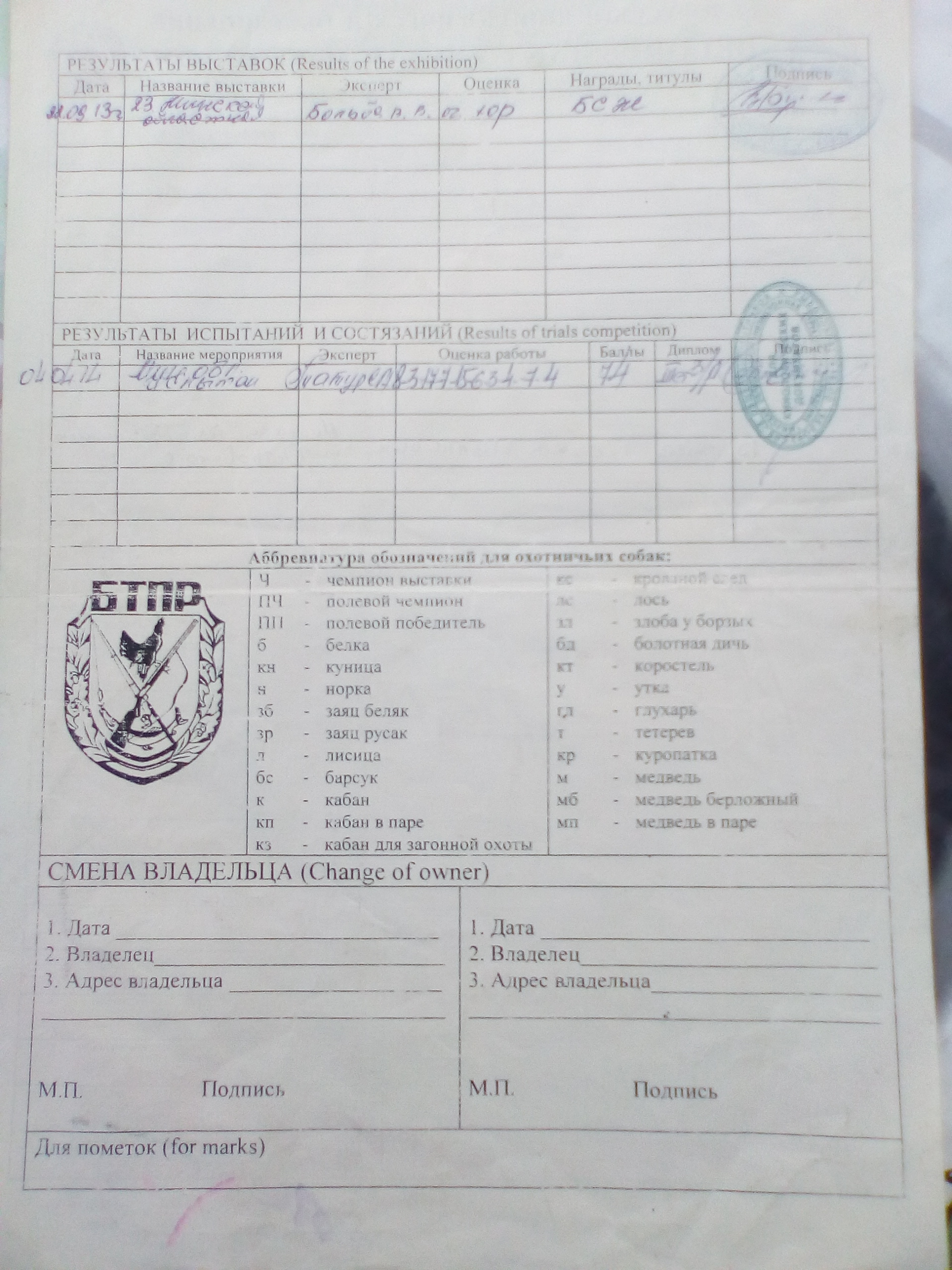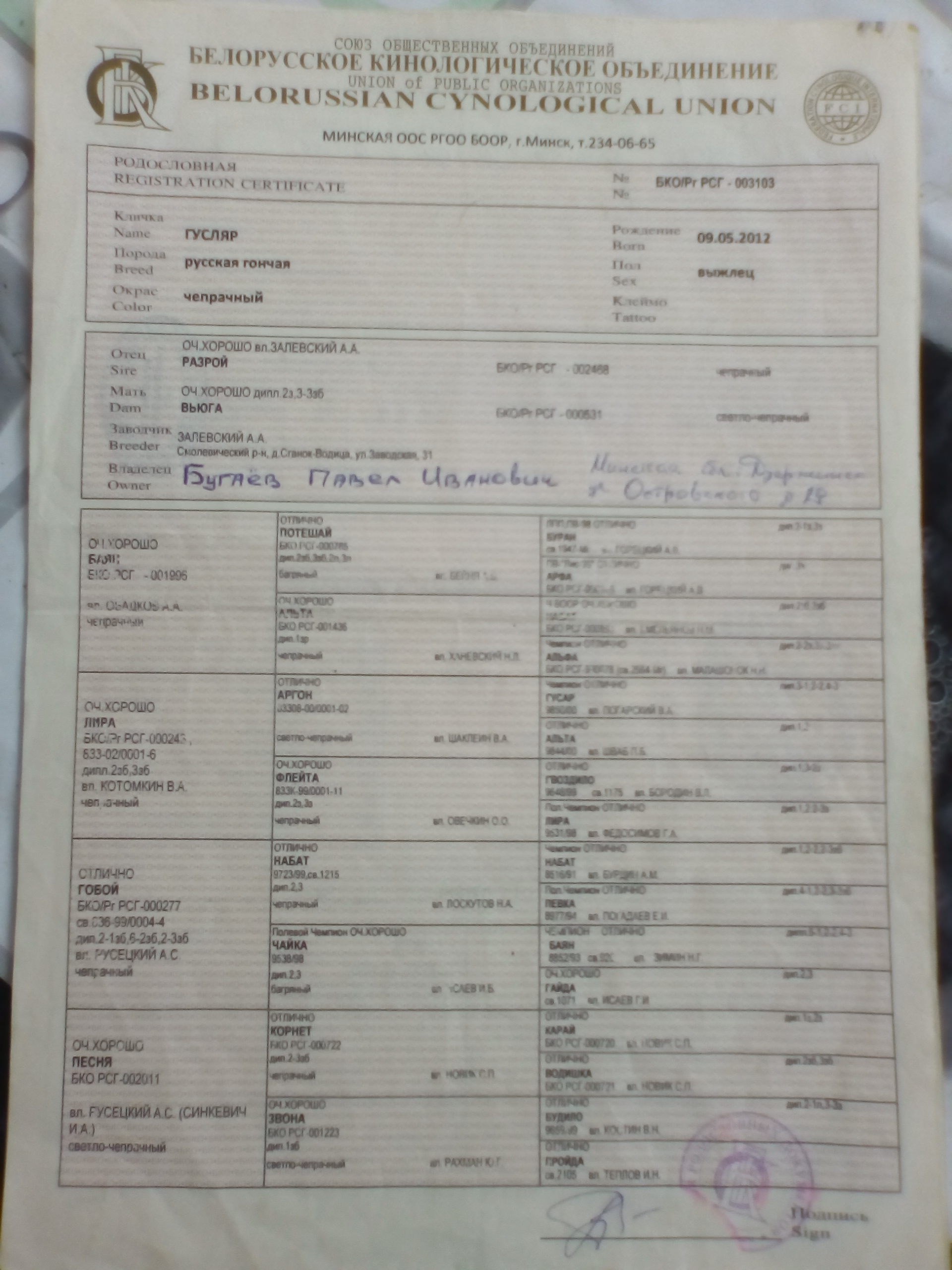 Папа - "Гусляр", экстерьер оч хор, диплом 3ст по зайцу русаку.
