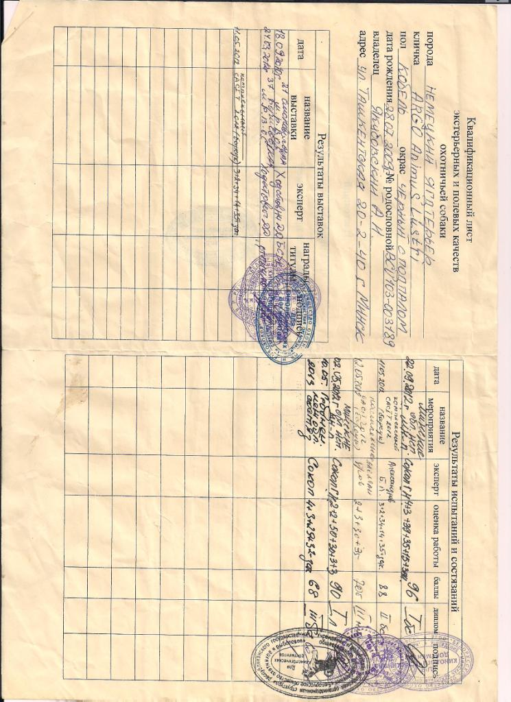 2.2.1 Кличка, номер родословной, фотография родословной с двух сторон.