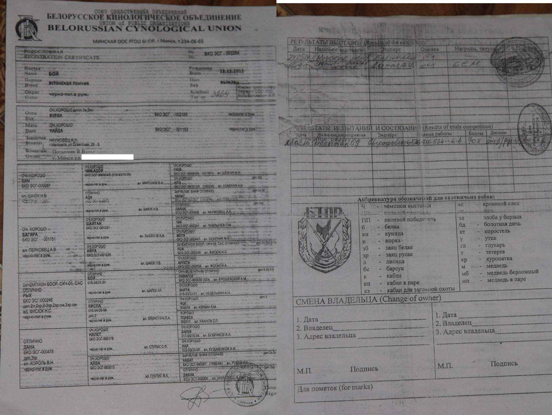 2.2.1 Кличка, номер родословной, фотография родословной с двух сторон.