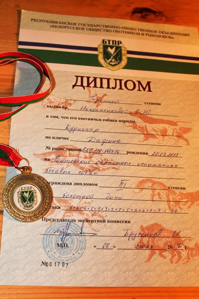 Все дипломы за рабочие качества с указанием по виду дичи :