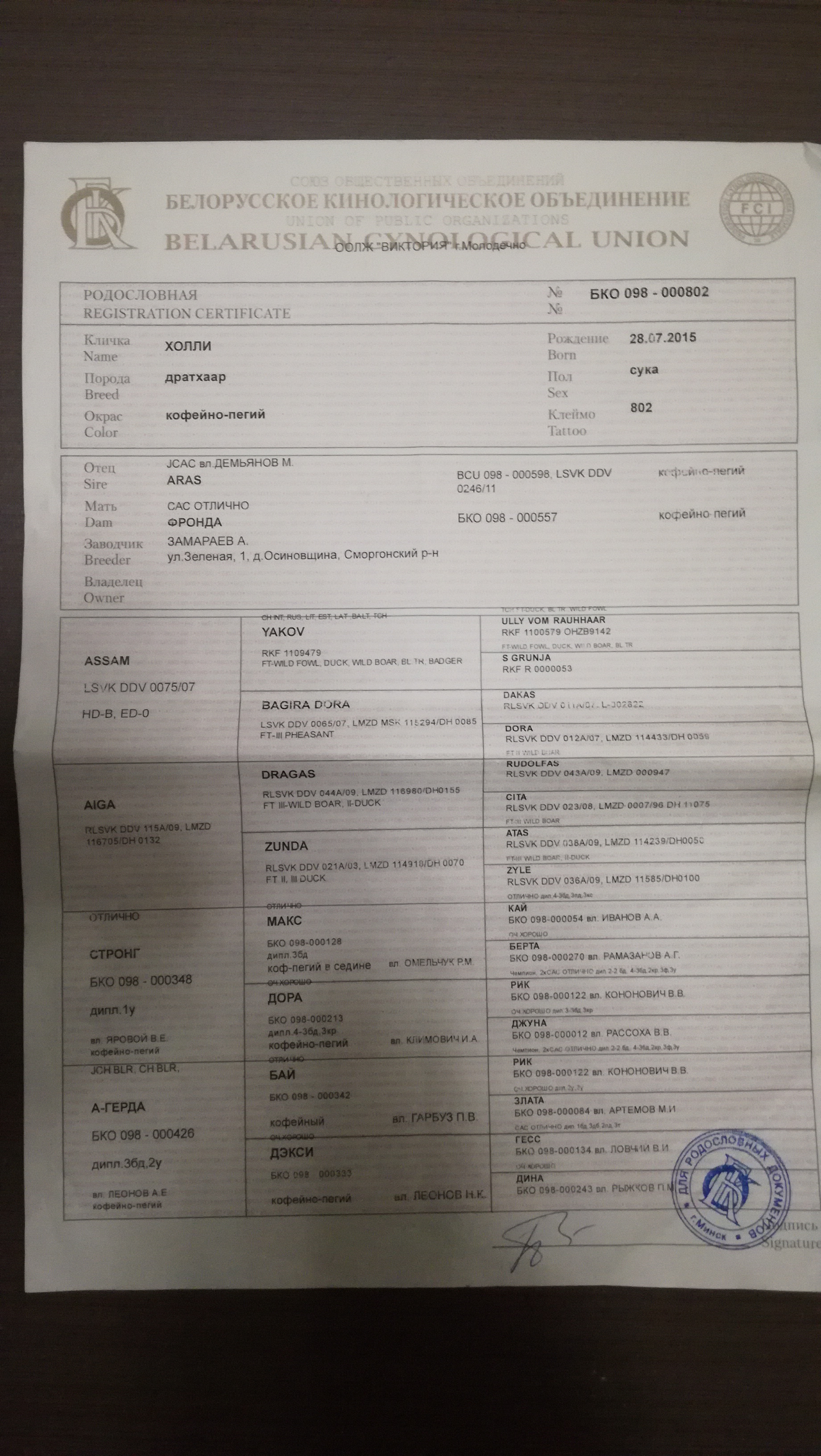 3. Кинологическая организация, зарегистрировавшая вязку РГООБООР