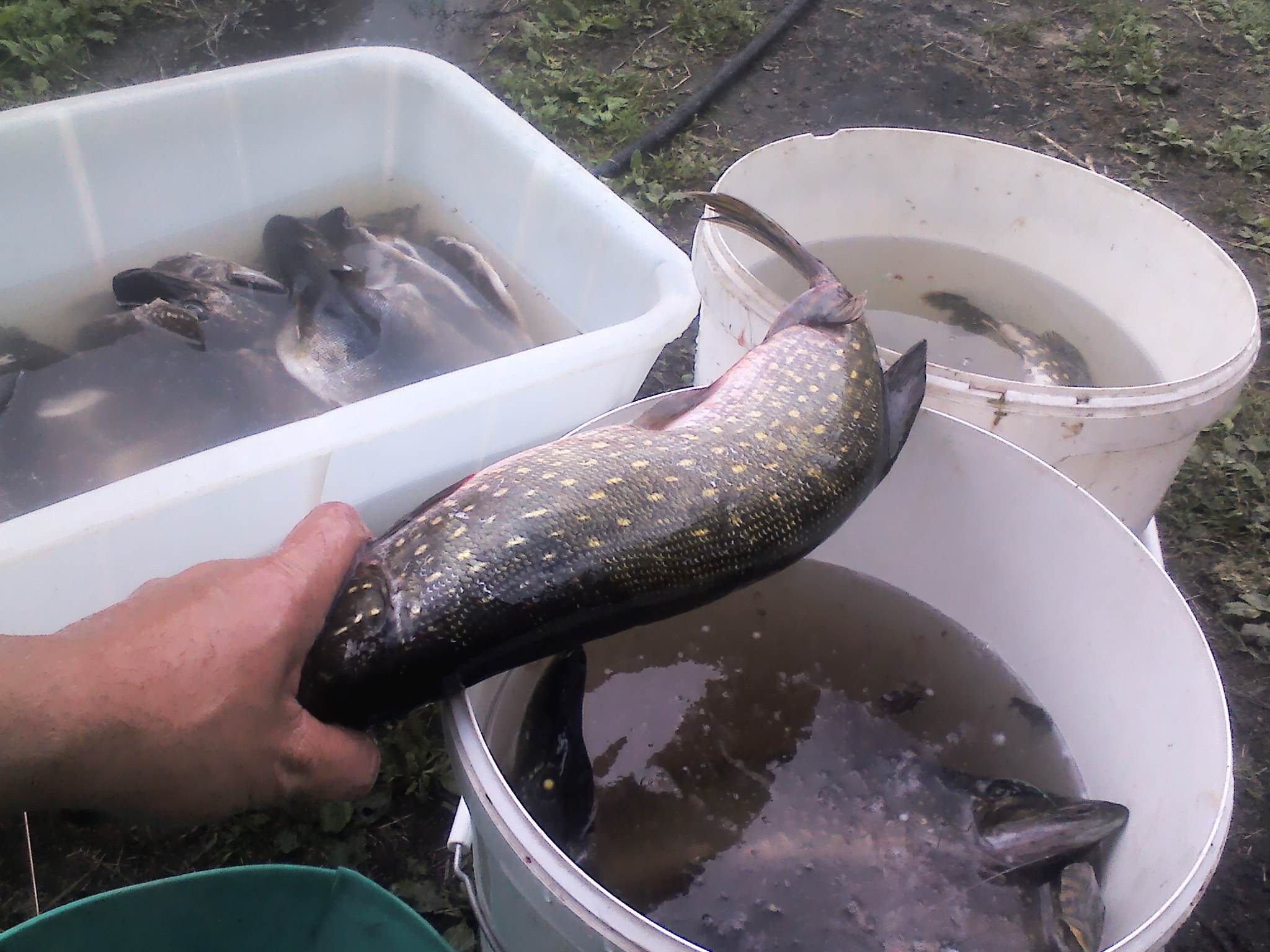 И так ведро с живцами меж ног, куда мне еще аккумулятор в лодку. Кроме того в стандартном варианте он там где плаваю далеко не уедет, видел у другана "минкоту", травинка на винт попадет и уже вибрация и сразу тяга падает. Бензомотор мой кроме того что зелень не мотает, так то что и могло бы намотаться просто рубит - мощи хватает. Да и нет смысла ради нескольких походов электру мутить. Жерлицы весьма добычливо, но скучно. И еще один момент, вчера в очередной раз поймал себя на мысли, что лучше 4 щуки по 1.5 кг., чем одна на 6... Попадали раньше 3-х килограммовые, и пальцы леской порежет, и тащить напряжно, и вокруг лодки круг - два нарежет.. А если большая клюнет, а вокруг коряги.. Весь соплями и кровью измажешься.. Рвало у меня там два раза в прошлые годы леску 0.55, конечно не при вываживании а когда жерлица глухо к бревну какому в воде и т.д. была привязана. Проверяешь - леска вымотана и нет поводка. Теперь так не ставлю, либо ветка-амортизатор свисающая над водой, либо поплавок. Вот если бы на спин, да в "чистом поле" таких вцепить.... Чистка рыбы..