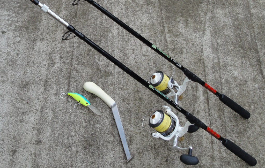 Спиннинг согнутый в дугу.
