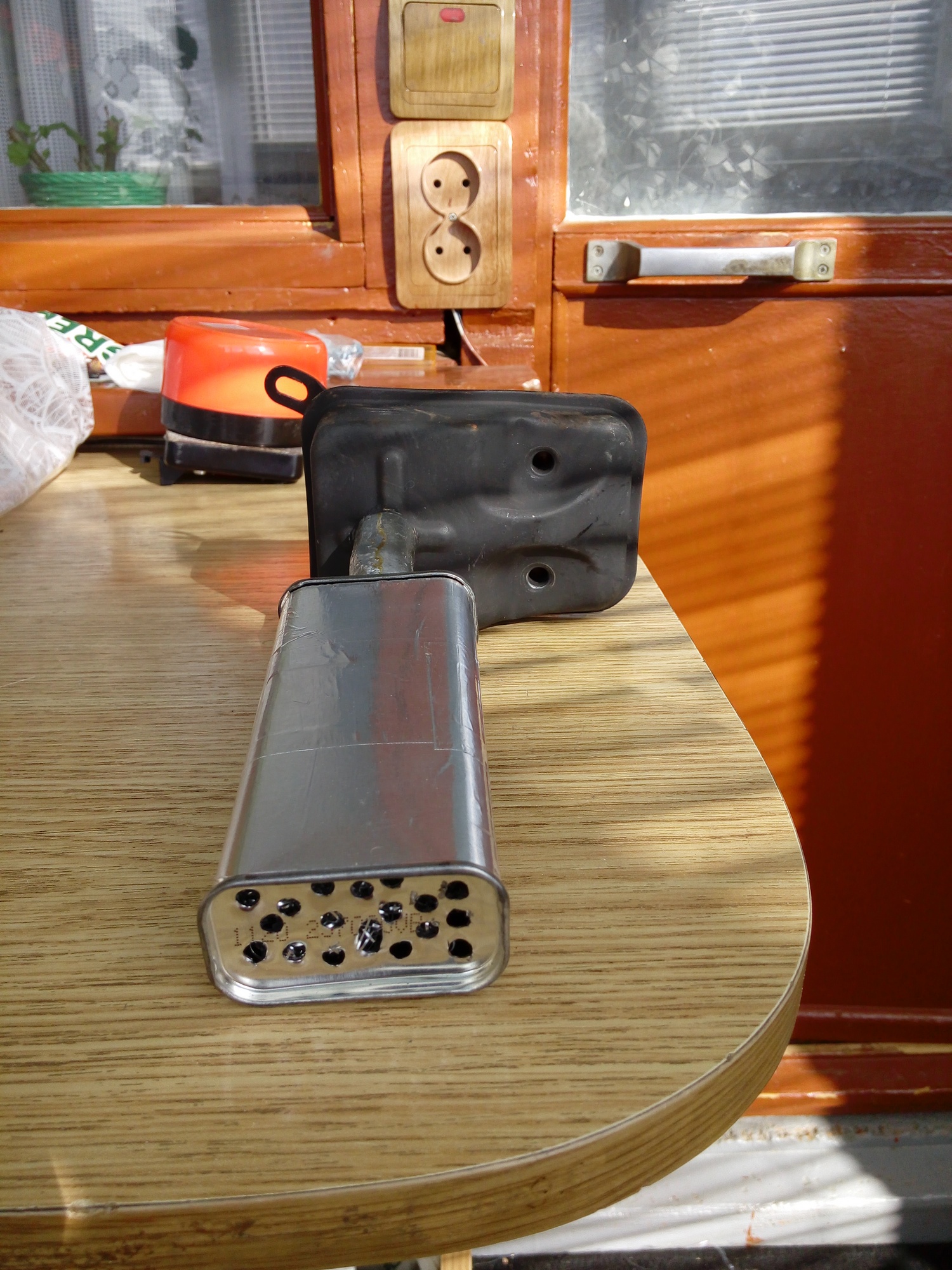 Лодка у меня Колибри К260. С дачи до воды - метров 20. На берегу сейф и мостик.Мотор приобретался чисто для троллинга. Первые испытания показали - тянет неплохо, но гырчит как зараза. Программа "Шумомер" на телефоне просто заглючила, хотя порог - 130dB (реактивный двигатель в 30 метрах).Поскольку мощности движка хватает с головой, решил начать борьбу с шумом.Пока все на стадии экспериментов (т.е. делаю макеты (действующие) с целью изучения эффекта). Первое - глушитель выпуска. Был взят баллончик от бензина к зажигалкам ZIPPO. У него алюминий толще, не сравнить с современными пивными банками.Изготовлен переходник на штатную трубку глушителя. Фискироваться будет хомутом и маленькой (2мм) шпилькой. Внутри одна (пока) металлическая мочалка.Понятно, что маленький объем,нет рапределения потока, но это только начало.