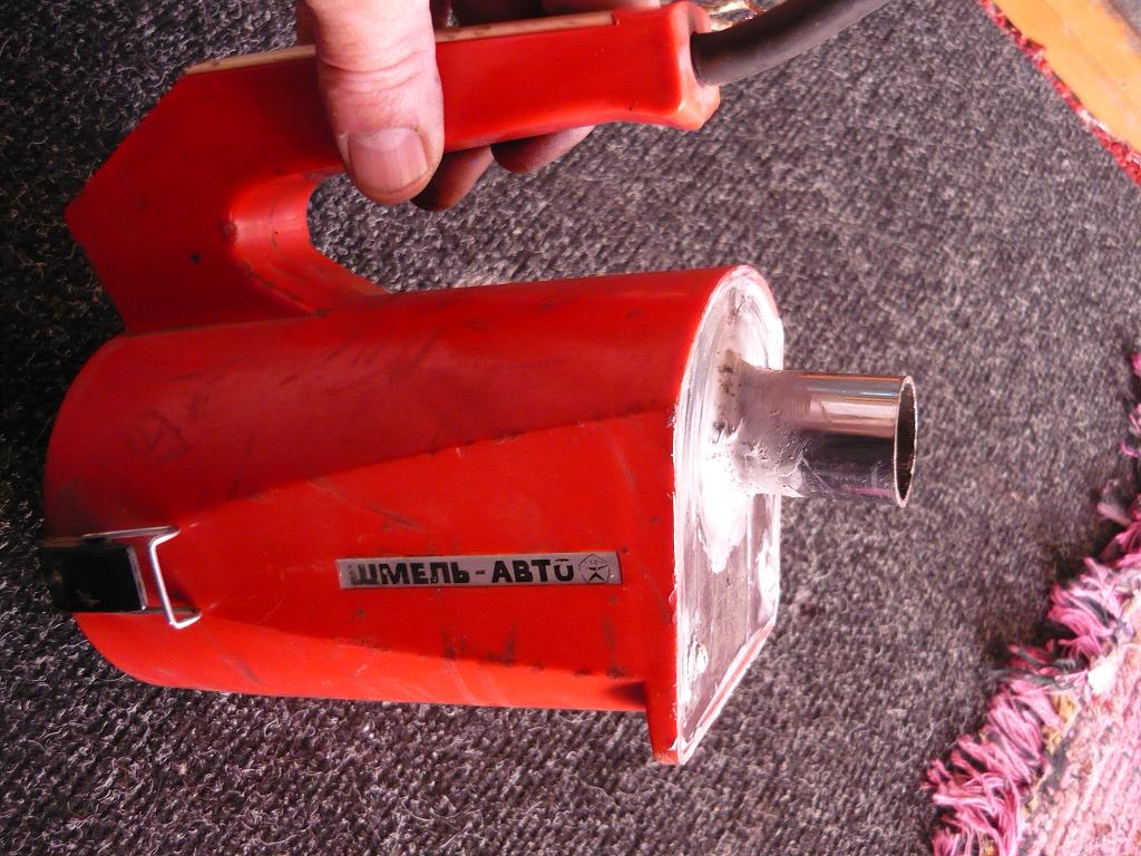После того как испытывал лодку и мотор,не очень понравилось качать стандартным насосом ,что комплектовался с лодкой.Сегодня за пол часа обегчил эту задачу,я думаю все помнят автомобильный пылесос "ШМЕЛЬ",который толком и не пылесосил,выкинул переднюю часть пылессборника для облегчения веса и габаритов и в место задней решётки пластмасовой ,изготовил металическую и преварил кусок трубки от офисной трубы(остался огрызок когда делал ногу на первый мотор)всё обмазал герметиком.Подключил к аккумулятору зажав ладонью,давления воздуха гораздо больше китайской улитки для накачивания матрасов,хотя ей пользовался весь прошлый год качая резинку .