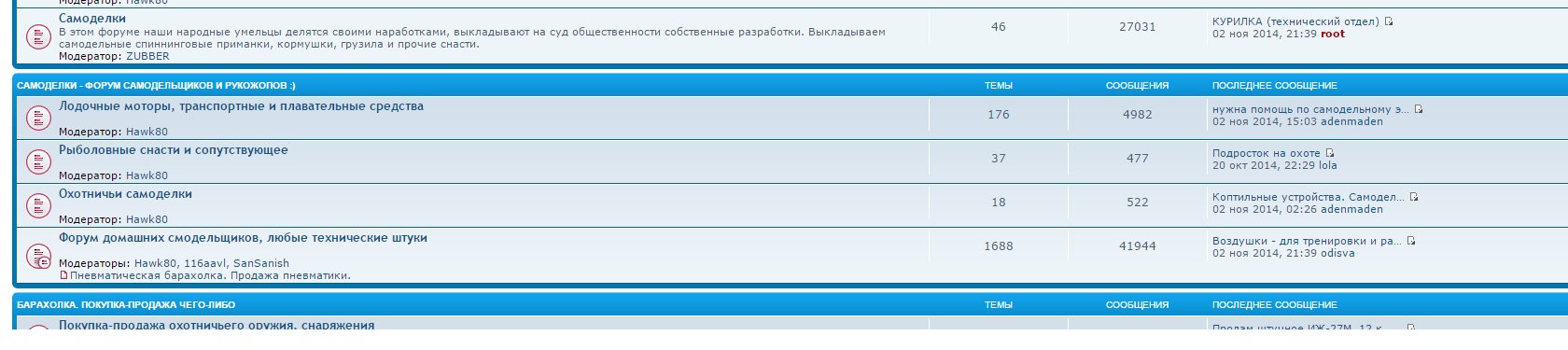 ZUBBER писал(а):Если переместить целиком весь раздел "самоделок", то думаю от "перемены мест - сумма не меняется". С другой стороны, зачем ?? Разное... как то звучит не "конкретно".. Тут "самоделки" сразу и на виду.. опять же у нас "эксклюзивная" экипировка тут.. а там х.з. как они будут среди "вороха разного" да еще и в оффтопе...
