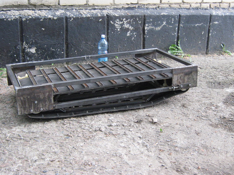да - по средине она лишняя,не зачем лишний снег возить.,а так сразу склиз из сплошной пнд будет идти по металлическим тракам,самое лучшее скольжение,но снег для смазки нужен,по чищеным дорожкам может подплавляться склиз от нагреву по сухим тракам.