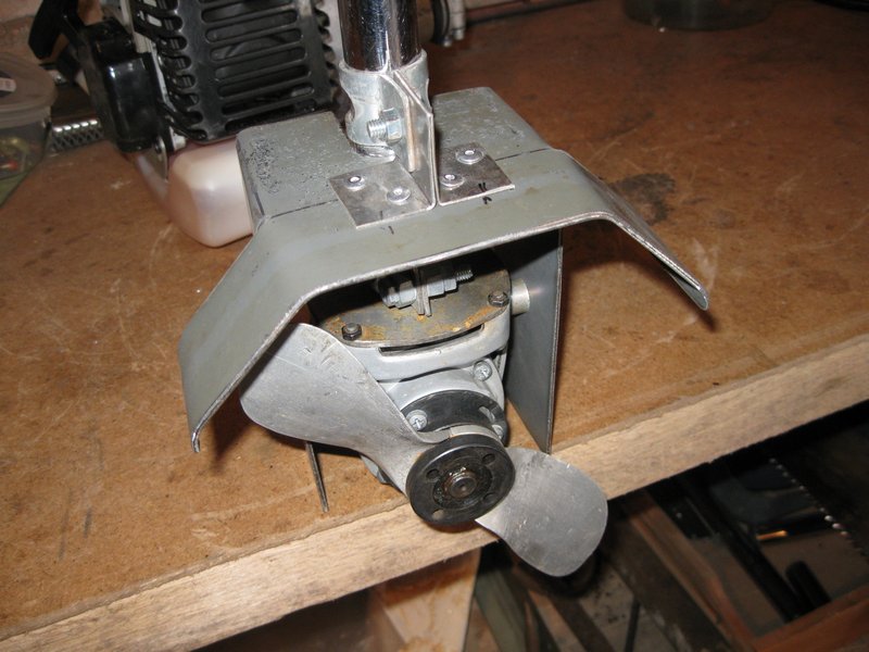 Вот смотрю сейчас на приблуду для защиты винта на первой фотографии, и думаю: а ежели ограничиться только боковыми лопухами, которые крепятся в резьбы для рукоятки, оно пойдёт же за руль?