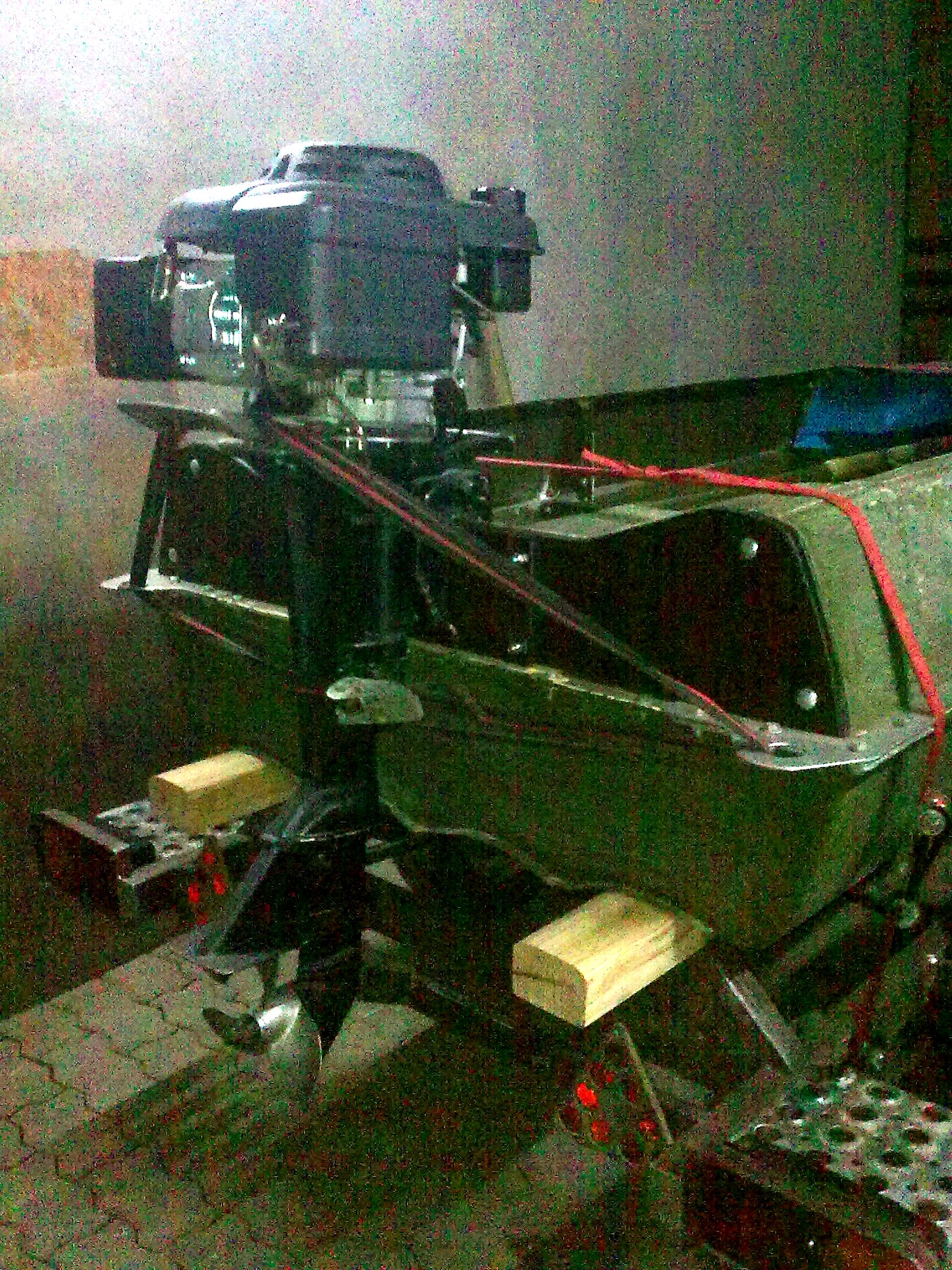 Кстати, ручка для переноски теперь и место для крепежа двига от проворота. Останется только перейти на ремни безопасности от авто. Лучшего фала для крепежа не существует. Широкий, крепкий, не гниёт и совсем доступный.