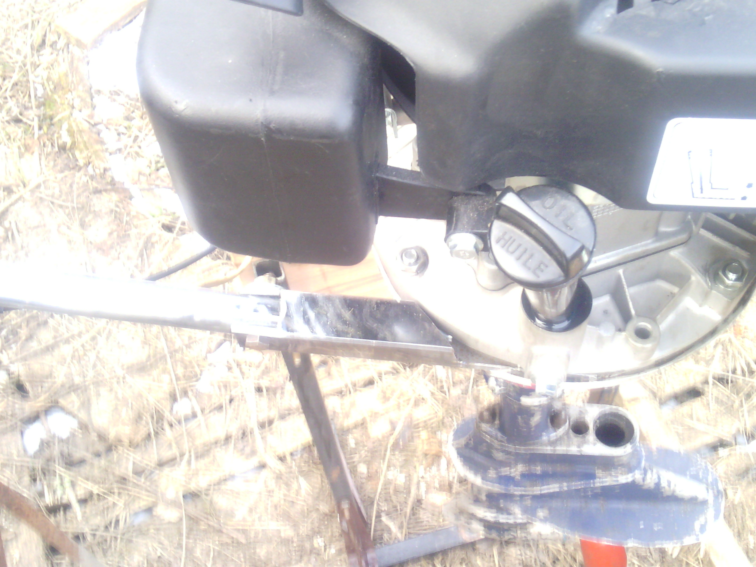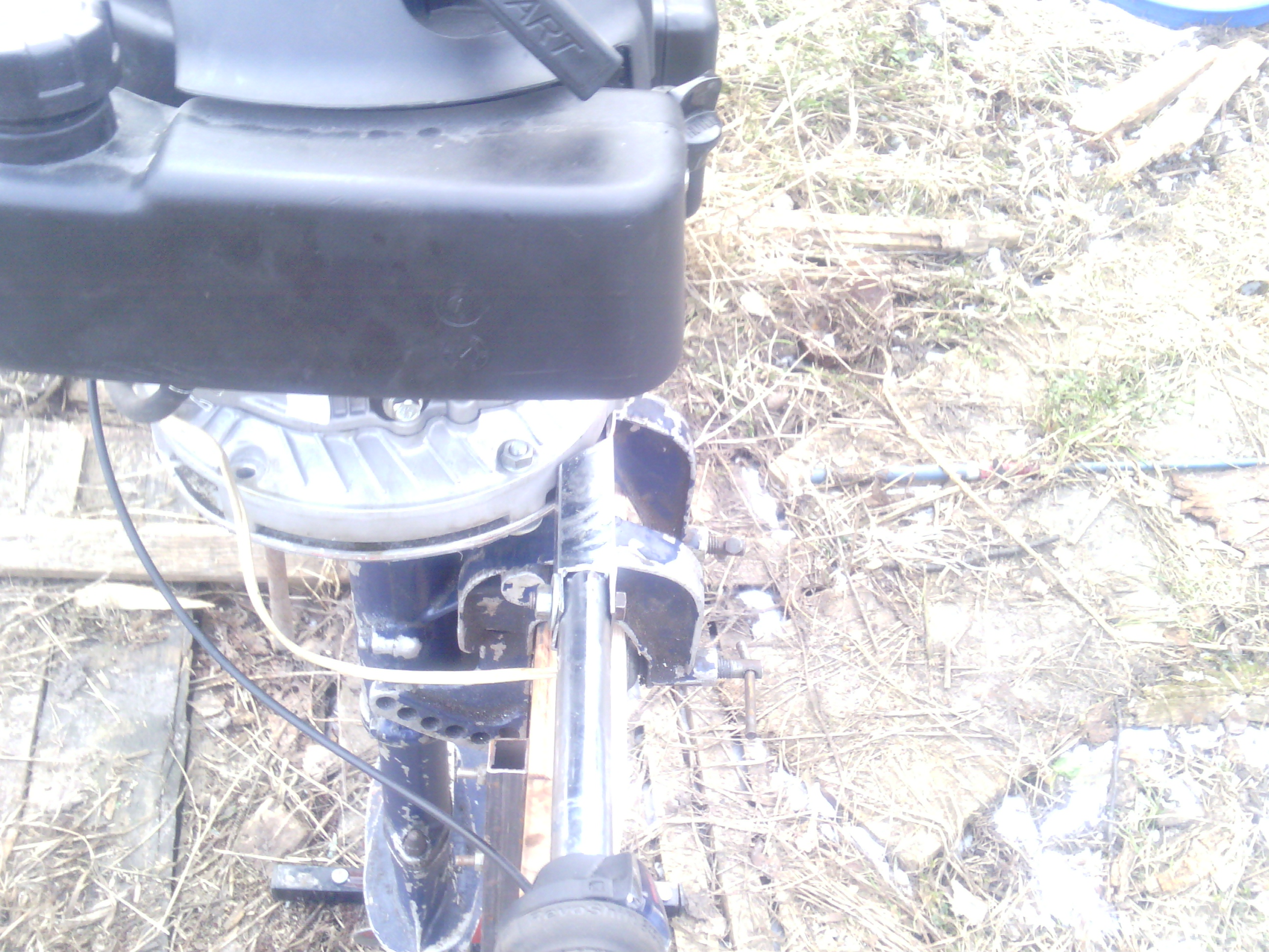 Из минусов: - излишний вес, неудобство при переноске мотора, когда его несешь цилиндром кверху. Для этой цели лучше подходит ручка, которая закреплена к переходной плите, то есть пониже, по сравнению с этой. Про это и Андрей674 писал, когда свою делал.