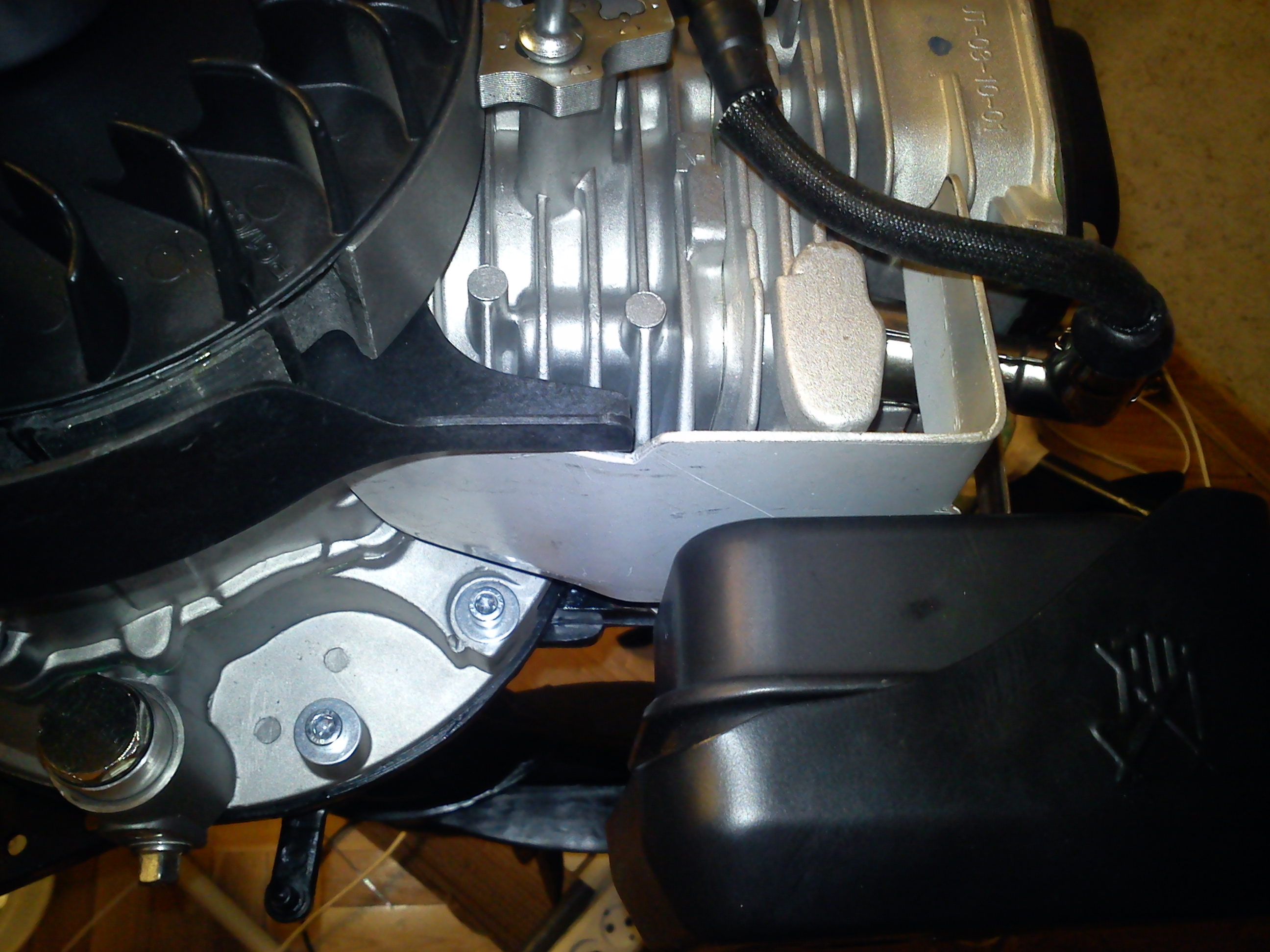 Chybykov писал(а):При первом испытании в жару мотору стало плохо.Масса холодного воздуха проскакивала мимо цилиндра.Поставил вот такую пластинку-холодных струй воздуха не стало.Кто-нибудь делал так? Напрашивается также приклепать полоску к кожуху двигателя(изнутри),чтобы дать больший поток на цилиндр со стороны глушителя.
