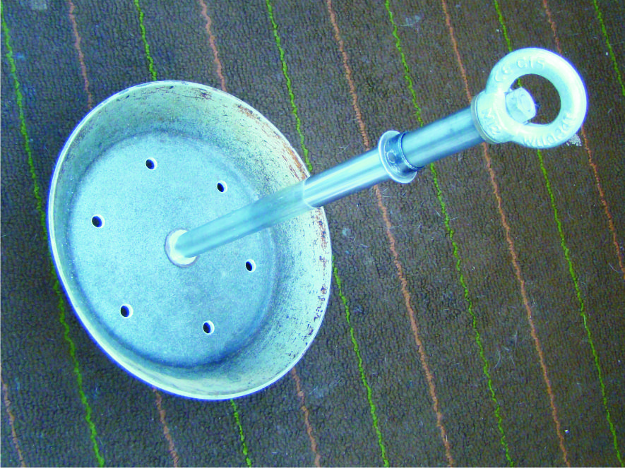 5. для крепления датчика эхолота применил старое сломанное крепление мясорубки... + кусочек проволоки-нержавейки с резьбой с одной стороны...