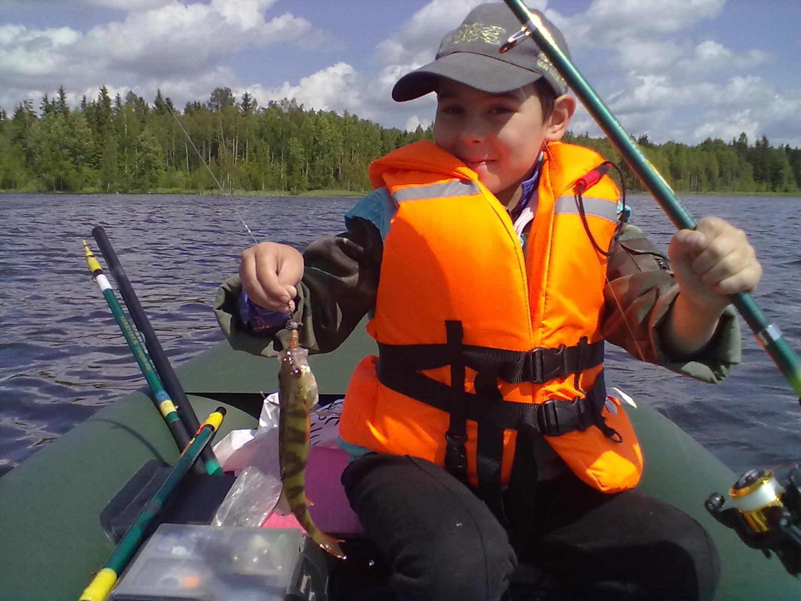 Первый окунёк у внучка на спиннинг!!! Перед этим учился 2 недели, и довольно таки усердно, без нажима с Моей стороны))) То есть не заставлял!!!