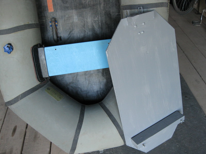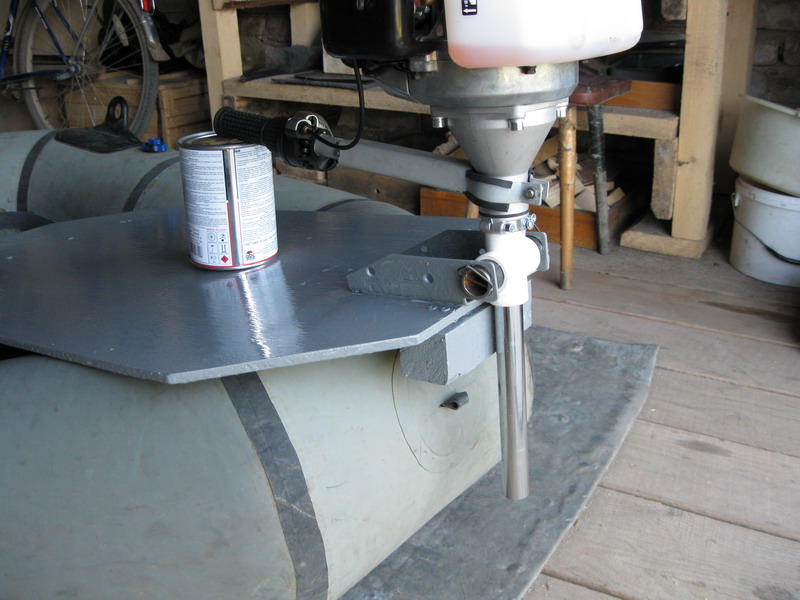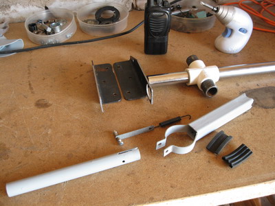 Ручку (румпель) тоже решил сделать складной. Отрезок трубы 20х1,5 и кусок квадратного профиля 25х25. Где нужно - подрезал, потом согнул, пружинка с поводком, винт с гайкой и две втулочки. Ручка готова. Я думаю по фотографии всё понятно.