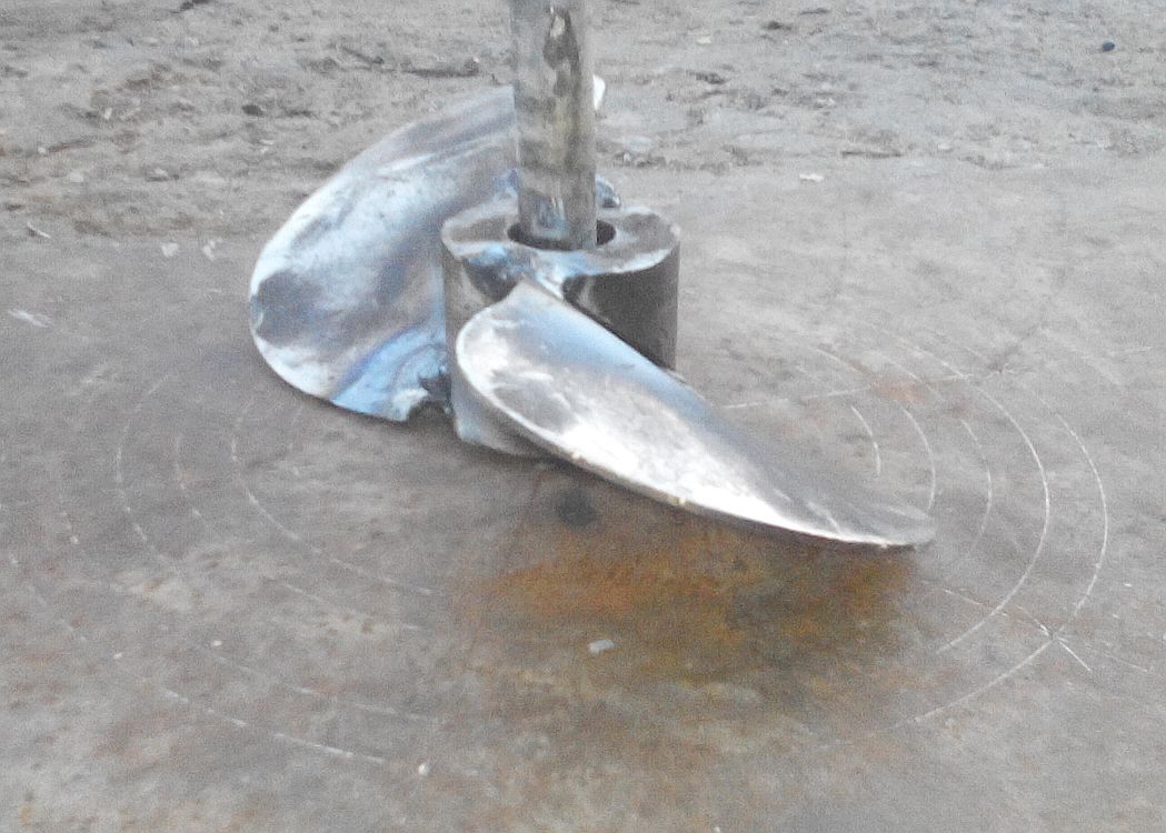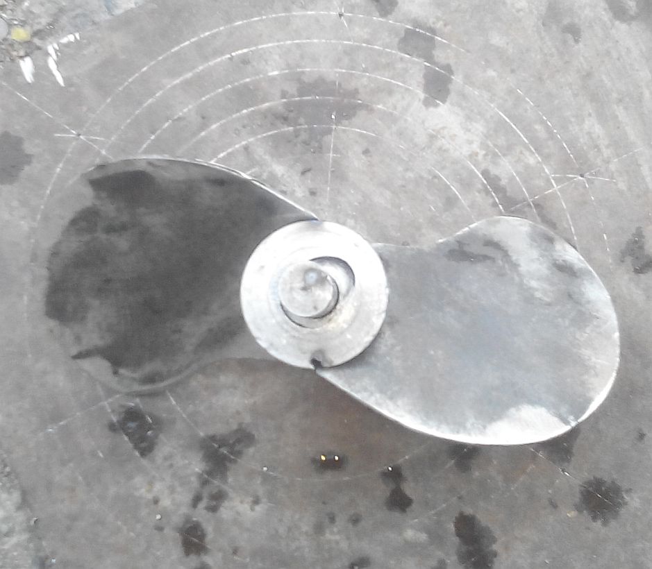 При этом толщина лопасти 4-5 мм. После изготовления заготовки винта лопасть обтачивается болгаркой и на гриндере выравнивается.