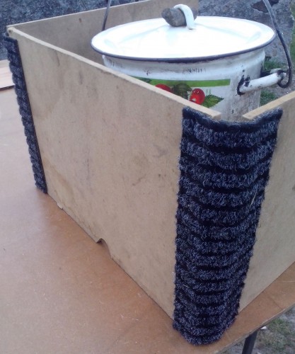 сверху (примерно 5-7 см от края) просверлил отверстия под болты... на этих болтах держится "каркас" из дощечек и сама столешница...