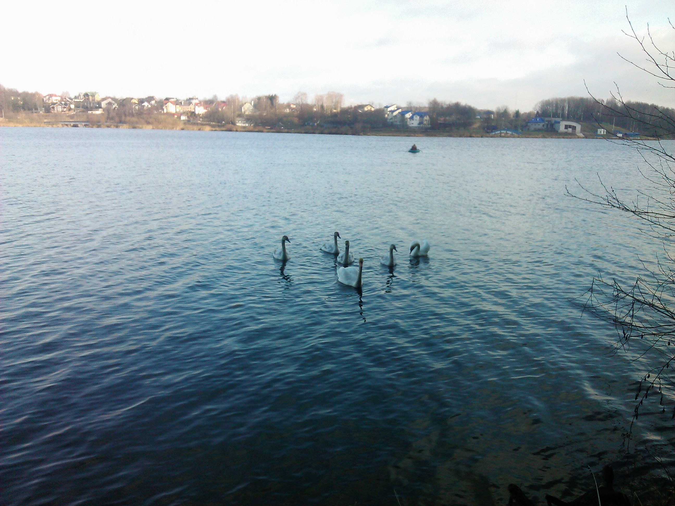 Уменьшения размера крючка и толщину поводка , картину сильно не меняло. Одна поклевка была ,чуть удилище в воду не улетело, подсечка -есть!! Сопротивляется , и очень активно ! Монстр попался, подумал я ! Подвожу к берегу , а нет, матросик в районе 100 грамм, а столько адреналина от его борьбы .Рыб продалжал поклёвывать , а я пытаться его поймать.Днем приплыли гости,очень близко метров на 10 от меня, не боятся вообще, а зря, могут найтись недоброжелатели и навредить красавцам. Прилично народу было на лодках , штук 5-6 пытались соблазнить хищника. Не далеко от берега на лодке рыболов ловил как я понял на зимнюю удочку .Короче все были в работе Думаю большинство тоже было довольна рыбалкой.