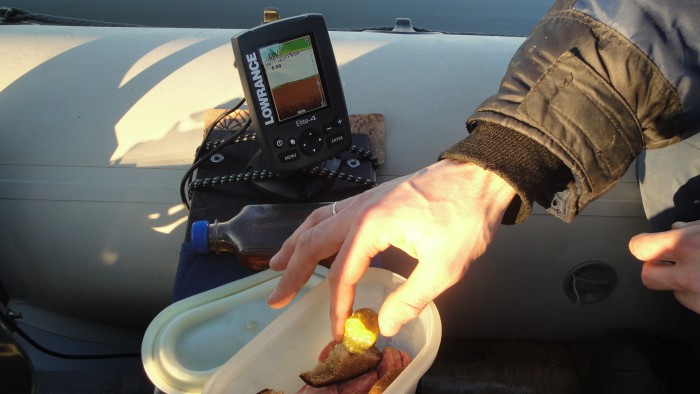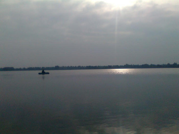 На обратном пути, всё ещё надеясь найти стаи рыбы, всматриваемся в показания эхолота, думая каждый о своём, на верёвке болтается лодочка с ругающимся и усталым рыбаком, которого с трудом, но нашли среди убегающих с озера лодок. Солнце уже коснулась горизонта, и вечер не сулил быть тёплым. На берегу все быстро сматывали замерзающие лодки, обмениваясь впечатлениями и делясь скупой информацией. Из всего этого скоротечного потока информации понял, что половина рыбаков в полном пролёте, некоторые, правда, утешали себя и окружающих сорвавшимися крокодилами. Остальная половина не боровшихся с призрачными крокодилами и русалками поймали по одной или по две небольших щучки. Как правило, подсекали за краешек пасти, пойманы были эти щурята на небольшие воблеры с небольшим заглублением. Примерно поровну из пойманного поймали на дорожку и половину в заброс. Вывод один, с наскока это озеро не взять, даже таким, как мы, профессионалам. Растущее давление, безоблачное небо и полное безветрие сделали своё дело, прибив наше величие и переместив нас, горемычных, в ряды новичков.