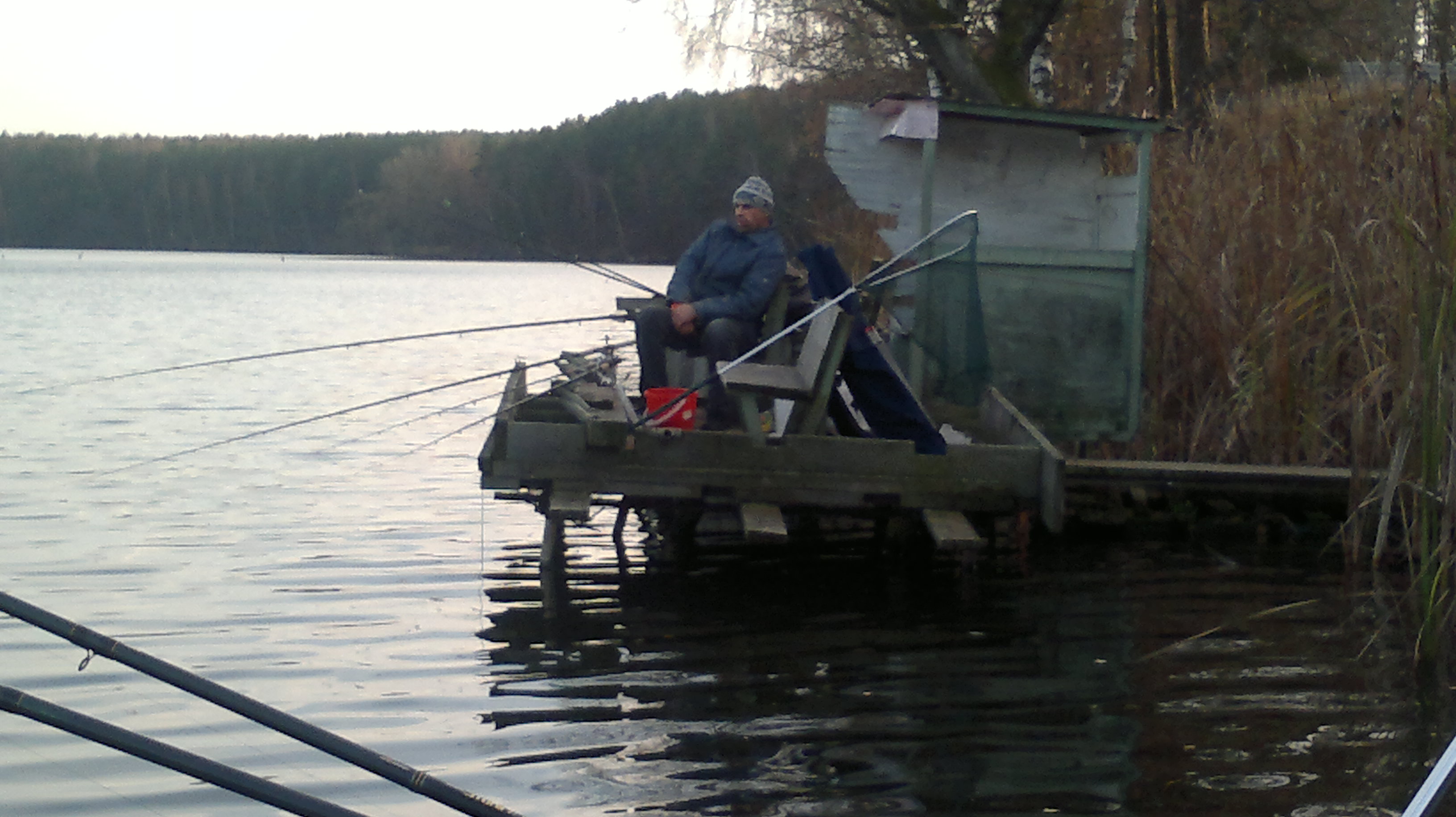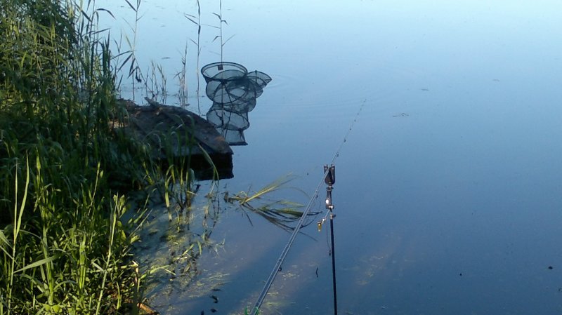 , а ловля с берега возможна только с построенных именных мостков, кои мы втроем и заняли на каждого по одному. Замечу также, что мостков там не мало, так как помимо тех трех, что заняли мы, в моем поле зрения были еще как минимум 6-7 штук. Сами мостки удобные, можно укрыться от непогоды, есть приспособы (на каждом мостке по своему) в которые можно установить удилища, либо положить их горизонтально воде. На фидер использовал прикорм лещ-плотва, отдельно досыпал подсолнечный жмых, добавлял немного кукурузы консервированной сладкой, жидкие приманки с запахом. Наживка - червь, опарыш, кукуруза. На удочку тесто из шприца. Судя по первому забросу фидерной снасти и дальнейших перезабросов, дно чистое без зацепов и мусора. С клевом нам не повезло, если говорить про прошлый раз когда отец ездил без меня, то водоем как будто подменили. В предыдущий раз клевала плотва, красноперка, подлещик, окунь. Вчера же все как обрезало. Справа на мостках сидел паренек и мужик явно из местных. Они, время от времени, вытягивали на кормушку или удочку подлещиков и хорошую плотву, на вопрос для сравнения о наживке парнишка сказал, что ловит на кашу, однако на какую я так и не понял, могу предположить, что разваренное пшено, или перловку. Мужик сказал, что ловит на тугое тесто из манки, а потом лишь добавил, что с собой на данном водоеме нужно иметь все, так как аппетит у рыбы не предсказуем, может только на червя, или перловку, а в другой день на все подряд, что естественно было принято к сведению, так как сам водоем мне понравился очень, и данный выезд будет не последним. Что касается природы