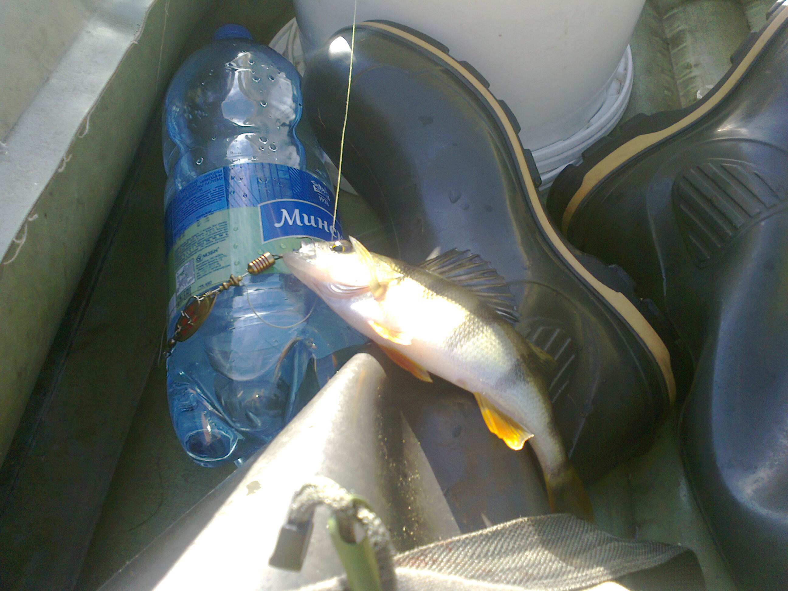 Первый же заброс виброхвоста на джиг-головке по направлению к нему показал скопление малька белой рыбы в старице, фонтаном выскочившего из воды при падении приманки. При таком изобилии естественного корма ждать поклевку щуки на искусственную приманку неразумно, но соскучившись за зиму по спиннингу, я продолжал бросать и бросать и вскоре почувствовал поклевку: щуренок, размером не на много больше довольно крупной приманки позарился на нее, но не смог заглотить глубоко, был быстро освобожден от крючка, сфотографирован и отпущен.