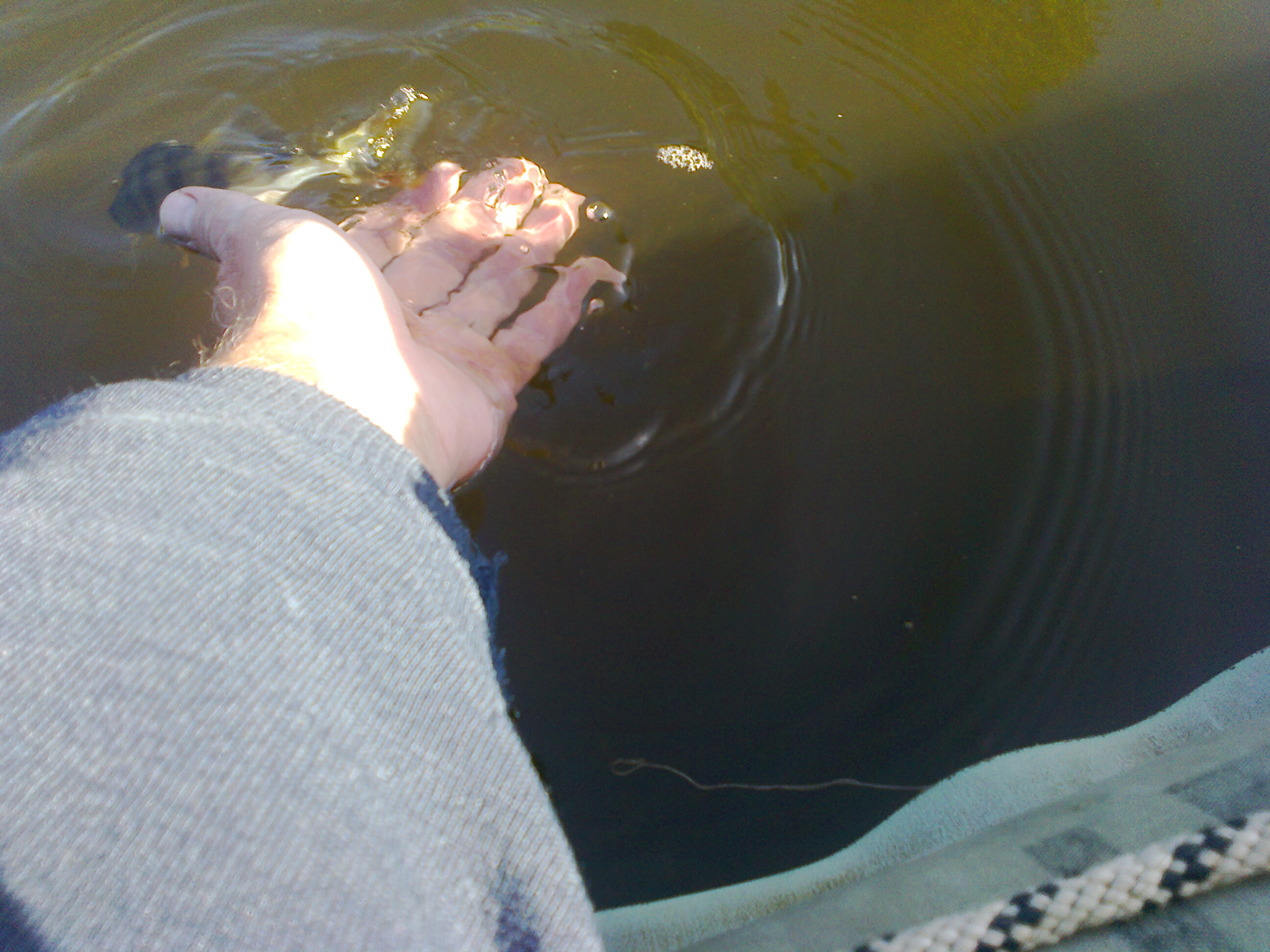 В самом начале этой вылазки, в районе деревни Семеновичи, со мной случилось происшествие из разряда «ужасы на рыбалке». Проводя через реку джиг-головку с резиной на крючке-десятке, я, чтобы не зацепить подтопленную прибрежную растительность, резко поддернул удилищем плеть, от чего джиг-головка выскочив из воды полетела мне прямо в лицо. Я среагировал, дернув головой в сторону, но недостаточно и крюк вонзился мне в щеку на уровне нижней челюсти. Сперва боли я не почувствовал, но попытка вынуть его вызвала ощутимую боль - качественная бородка сделала свое дело, мертво удерживая крюк в щеке. По началу я запаниковал и собрался ехать домой, чтобы в домашних условиях от него освободиться, но это означало бы испорченную рыбалку и не проведенную разведку новых мест. Успокоившись, я подумал, что смогу решить проблему в полевых условиях: все у меня для этого было, за исключением спирта или водки для дезинфекции. Вернувшись в машину, я уселся на переднее сидение, повернул к себе зеркало заднего вида так, чтобы хорошо видеть крюк, достал швейцарский мультитул с кусачками. Теперь надо было вывести из щеки наружу жало крючка с бородкой и не задеть при этом слюнную железу и лицевой нерв. Это оказалось не сложно, но болезненно. Труднее оказалось откусить кусачками жало с бородкой, но и с этим я справился за пару минут, а потом легко достал крюк из щеки. Дезинфицировать рану было нечем и я, понадеявшись на авось, промокнул кровь туалетной бумагой и пошел ловить дальше. Сейчас, когда пишу эти строки, пока все нормально – нагноения нет.