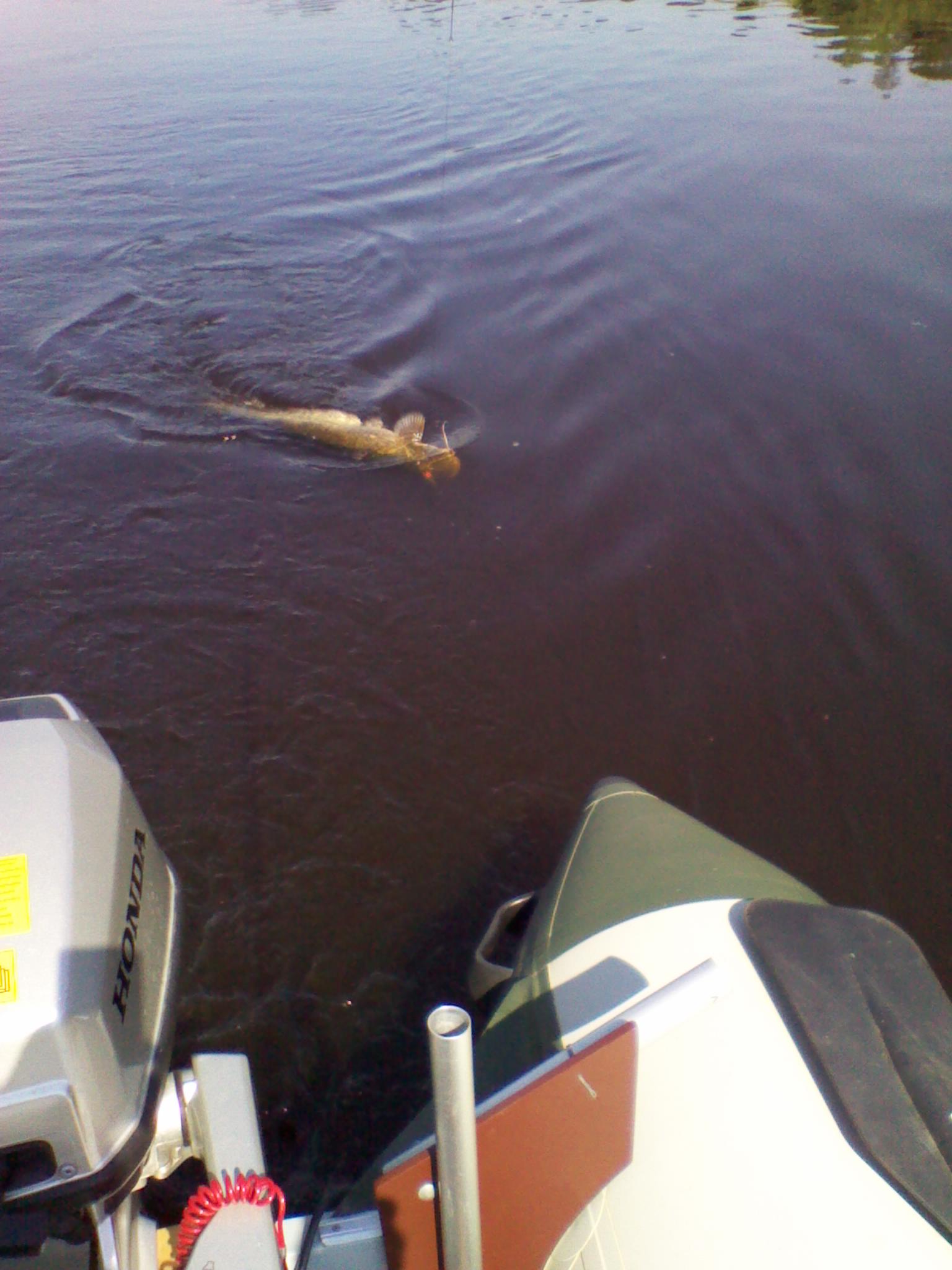Видело это пятеро шокированных рыболовов, и все пришли к выводу, что сомик был живцом. Все эти рыболовы не новички в ловле на З.Двине, наверное самый неопытный среди их я. После этих событий, при ловли троллингом на З.Двине, держу в лодке пару калабах.