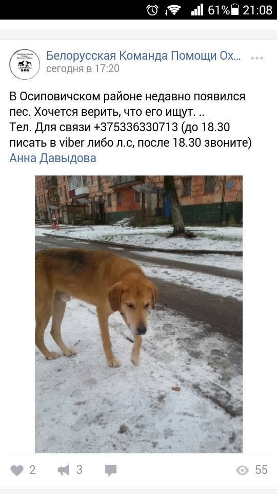 Свою собаку так и не нашёл.Попробую здесь.Во вторник 5.12 на охоте в Бобруйском районе, потерялась русская гончая.Потерялась в районе деревни Обча,может быть в любой из ближайших деревень(Петровичи,Лагодовка,Богушевка,Горбацевичи,Аколица и т.д).Уже объездили весь район,но нигде никто не видел,только в Горбацевичах видели похожую в среду.Может в ближайшие выходные кто увидит,просьба сообщить 80447407750