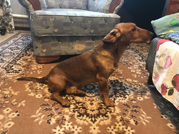 В Минске пару дней назад был найден рыжий пёс, по виду такса. На морде и ушах небольшие шрамы, как от укусов зверя.