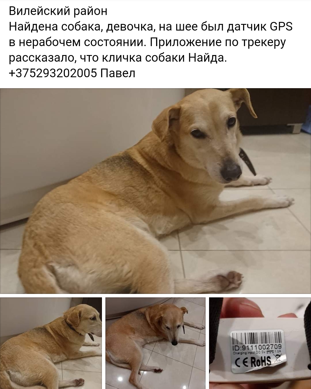 Вчера, 18.01.2020, в Вилейском районе, найдена собака. На шее ошейник с неработающим GPS-трекером. Может быть найдётся хозяин?