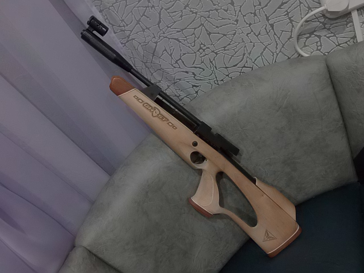 И как-то вспомнил-есть же у дружка-комрада «ИЖ-60»!!! Ну и предложил ему «нарядить» его металлического «Ёжика» в деревянный «костюм»,а пластиковую ложу оставить на возможный «апокалипсис». Подумалось-чем деревяху будут мухи метить,лучше её довести до ума и сделать приятную и нужную вещь для товарища.В общем самолично дружище прибыл ко мне в Витебск и передал своего «Ижика».Вынес некоторые пожелания, хотелки-весь будущий конструктив. Основным пожеланием была компактность. Был у него чехольчик маленький,так он с ним под скрипача успешно «косил».И в пластиковой ложе его «ИЖ» там очень хорошо помещался,хотелось ему и обновлённую версию носить в этом чехольчике в «консерваторию».Ствол винтовки был уже чуть отпилен и на него сделан шикарнейший надульник с родной металлической мушкой!Длины он не увеличивал-служил именно именно утяжелителем.Во красавец: Необходим был новый задник стальной в компрессор.С этим помог и также поучаствовал в проекте дружок Саня!Саша,спасибо!Отменная работа!!! Стоковый задник из лёгкого сплава был отложен.Также вместо штатного рычага взвода был поставлен отменно работающий новёхонький рычаг с пластиковой ручкой.Просто в рычаге родном заедало кнопку,а на ручке железной в конце крюк-и этот крюк упирался в ложу,а отпиливать и срезать совсем ничего не хотелось.Рычажок этот с ручкой «подсеял» всё тот же….ну конечно же Митька!!! Ещё раз спасибо за помощь и участие,Димка!!!!!