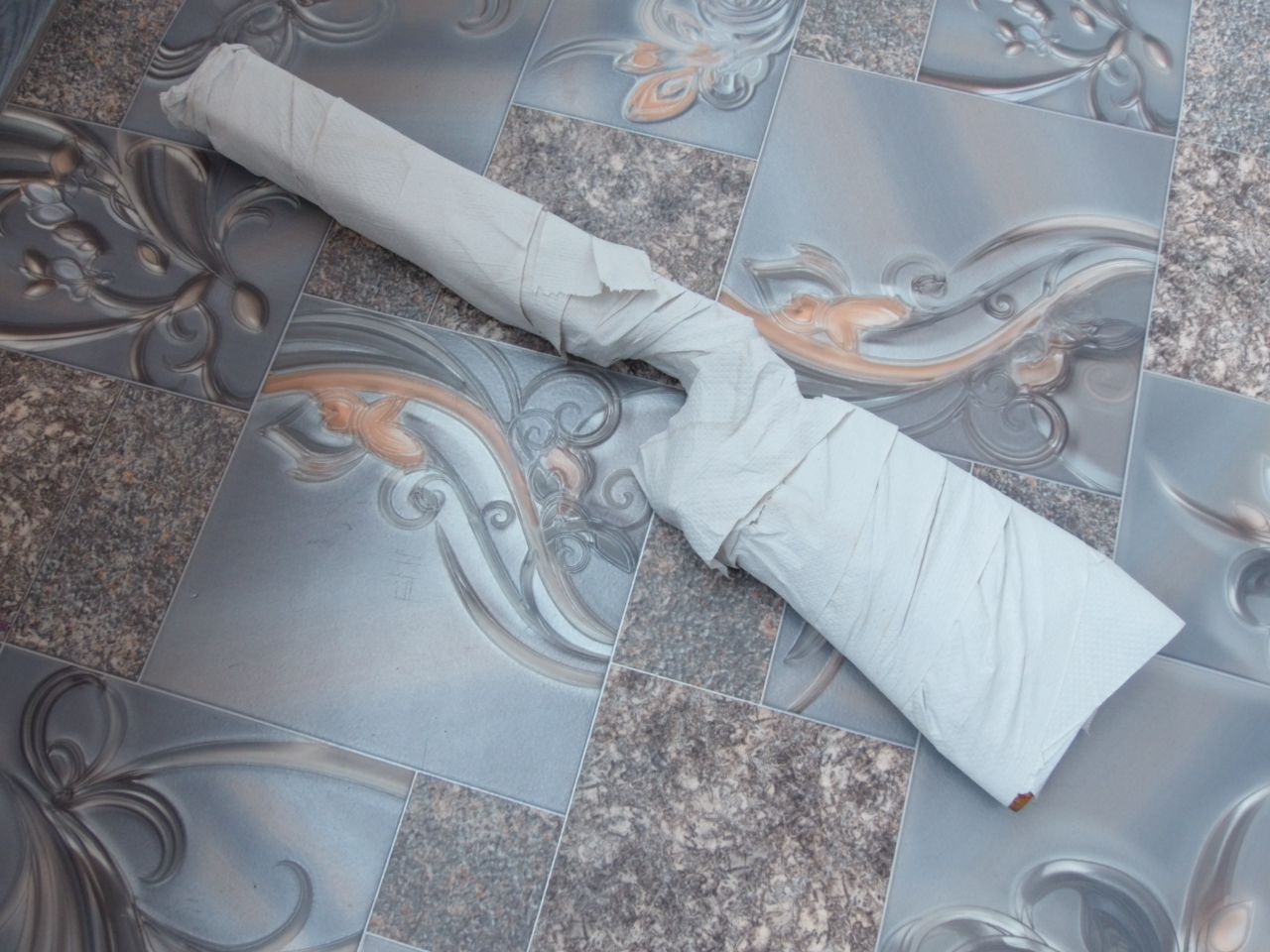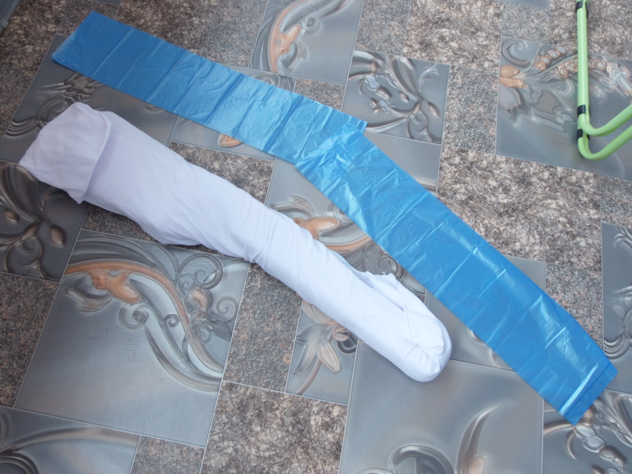 Вкладываем ложу в один пакет допустим прикладом. Теперь пришло время ацетона.Только работайте в хорошо проветриваемом помещении!!! Я трудился на балконе,открыв 2 створки-создал сквозняк то есть! В большой шприц набираем ацетон.Если нет большого шприца-из любой капроновой бутылки делаем «брызгалку»-как в детстве. Лучше с несколькими мелкими дырочками. И обильно (но не слишком-ни к чему) орошаем ацетоном из «брызгалки» наш свёрток в пакете.Сначала с одной стороны,потом перевернув-с другой! Затем вкладываем деревяшку в другой пакет уже цевьём. И повторяем процедуру с уже этой частью ложи вплоть до уже обработанного участка. Главное не оставить необработанных ацетоном участков. Также с обоих сторон!!! Затем скручиваем оба пакета как можно плотнее и фиксируем стык пакетов скотчем,лентой-чем угодно! Главное-чтобы не было утечки ацетона-то есть создаём как бы «ацетоновую баню». В этом способе применяется свойства не столько самого ацетона в жидком виде действующего на поверхность дерева,а его ПАРЫ!!! Примерно так было в моём случае: